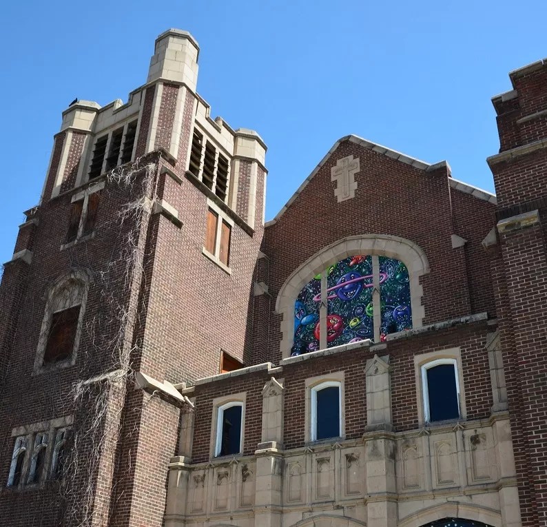 Both the interior and exterior of the church have been updated with murals since Elevation Ministries moved in.
