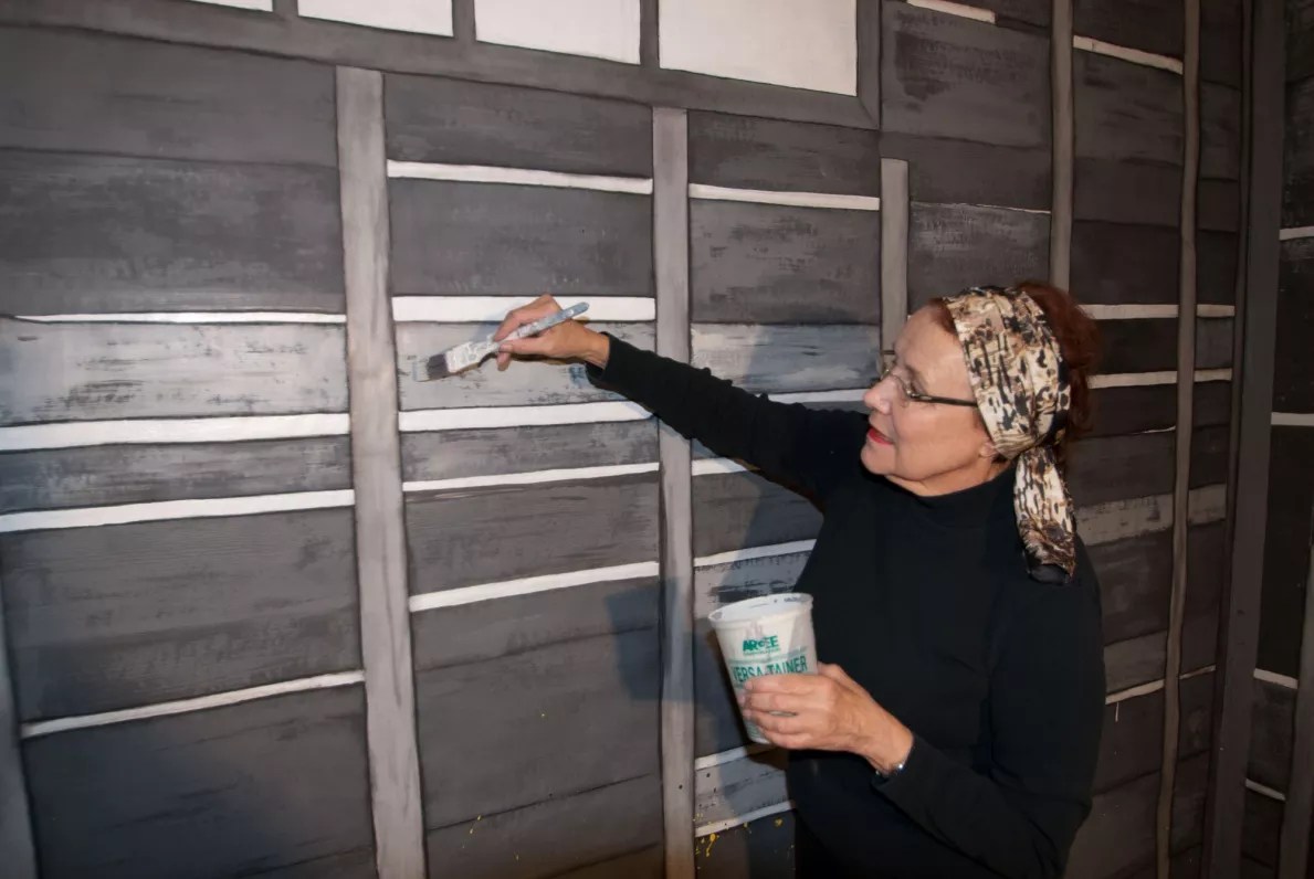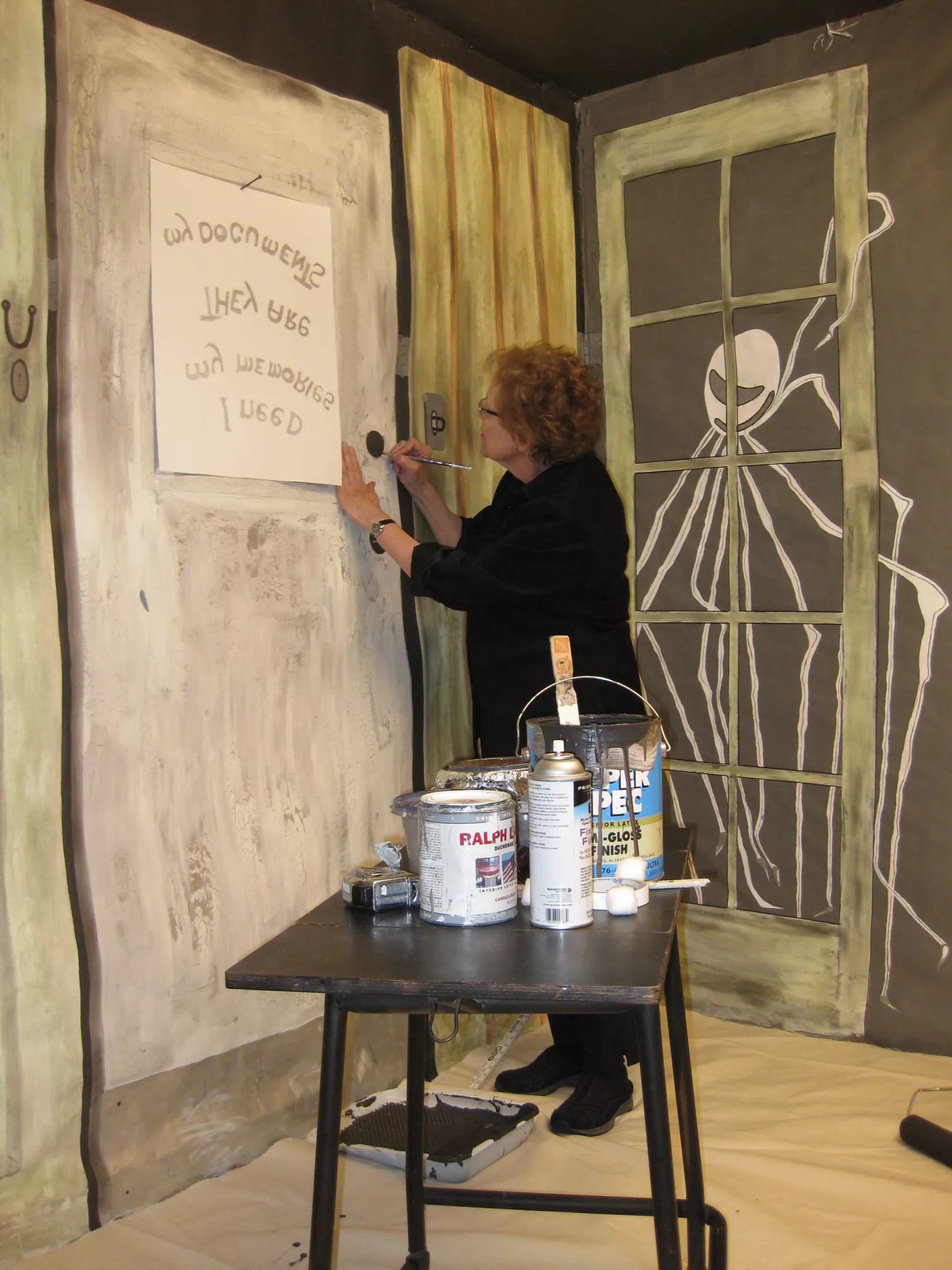 Stockhold preparing the set for her Jackson Pollock shoot.