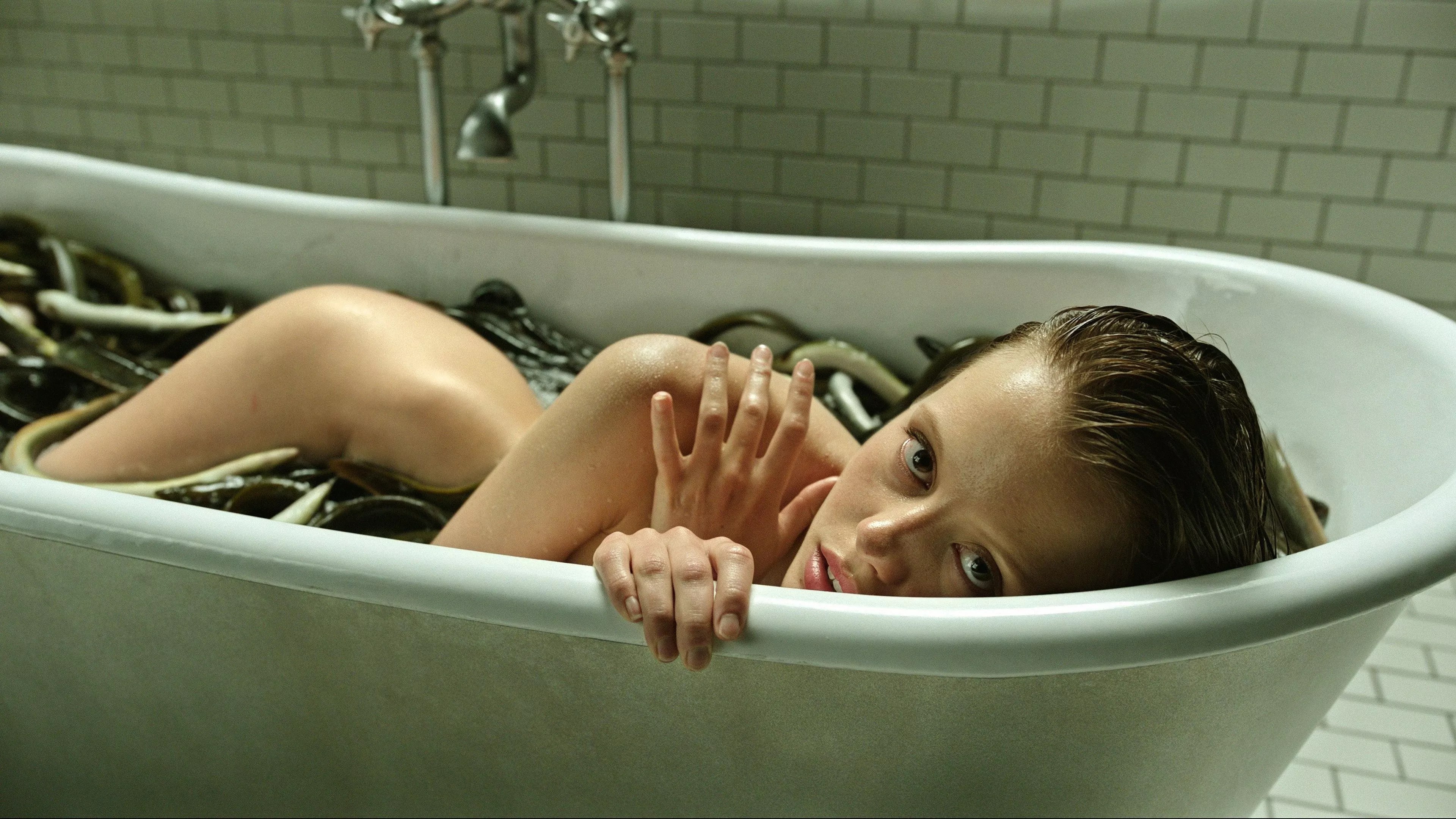 Verbinski’s a whole lot like Kellogg in that he has found a million ways to utilize water – only his uses are far more terrifying. Lockhart’s slowly driven mad by slithering eels that wriggle out of his toilet and into the giant metal deprivation tank the doctor’s ordered him into. When things get wet, Verbinski is inspired, letting the curiously creepy feeling of, say, watching a gaggle of elderly women paddle back and forth in a pool create tension. He juxtaposes the serene with the surreal: images of the eels and metaphysically menacing deer and shapeshifting rooms, which recall the disjointed images of random creepy party guests in Kubrick’s The Shining. The film’s style – up to a point – is also somewhat reminiscent of Lucile Hadzihalilovic’s recent water-infused horror Evolution, but cleaner and brighter. And, ultimately, with less meaning and much more explication.