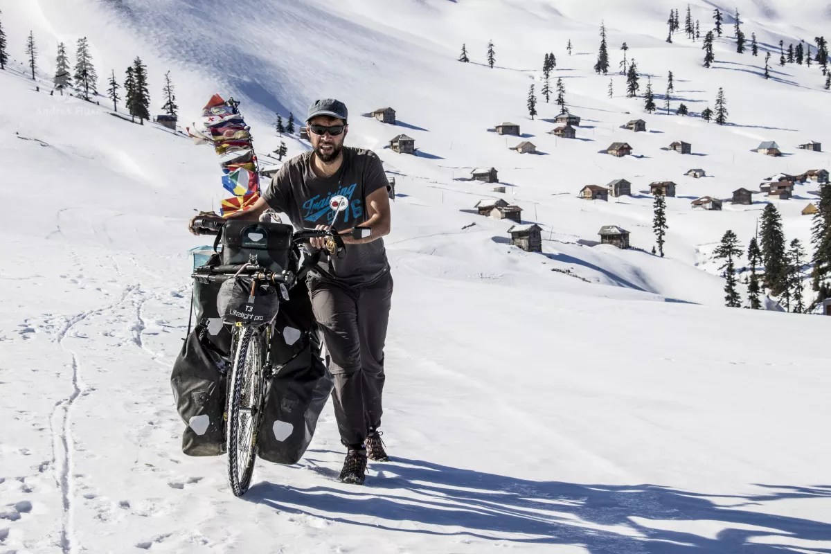 Andrés Fluxa, a 35-year-old native of Argentina, has been pedaling around the world for almost four and a half years, having kicked off his adventure in December 2012 from the southernmost city in South America, called Ushuaia.