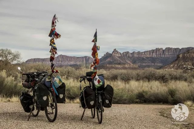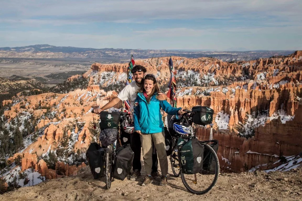 The pair says that traveling in the United States has been rewarding so far. They particularly enjoyed the dramatic and expansive landscapes of Utah. The only hiccup was that Fluxa was pulled aside for hours by U.S. Customs agents at the airport in San Francisco because the agents wanted to know why he had an Iranian visa in his passport. (The couple had cycled in Iran as they were crossing Central Asia).