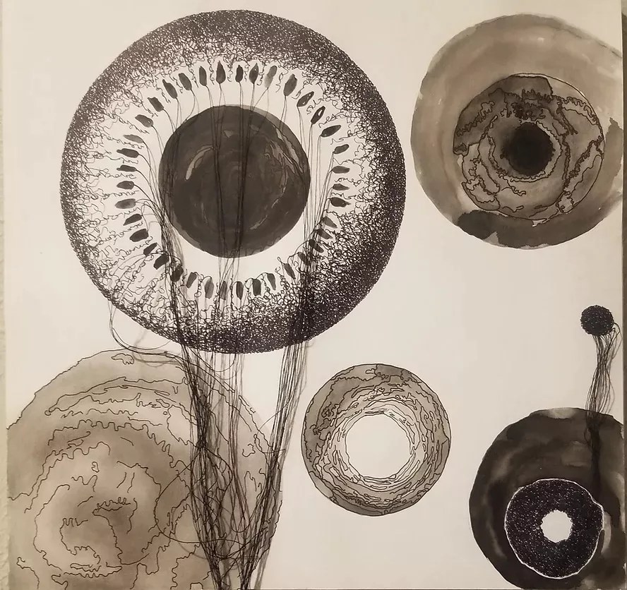 Jennifer Jeanelle, “Observance,” ink, thread and paper on wood. Minimum bid: $75, at Pirate: Contemporary Art.