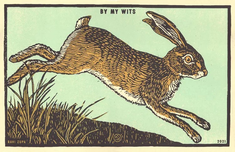 Ravi Zupa, “By My Wits,” three-color screen print.