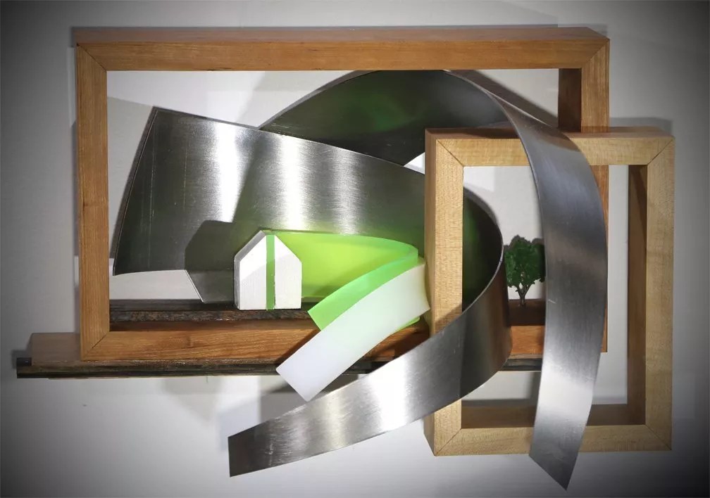 Craig Robb, “Solace in Introspection,” 2022, wood, steel, acrylic.
