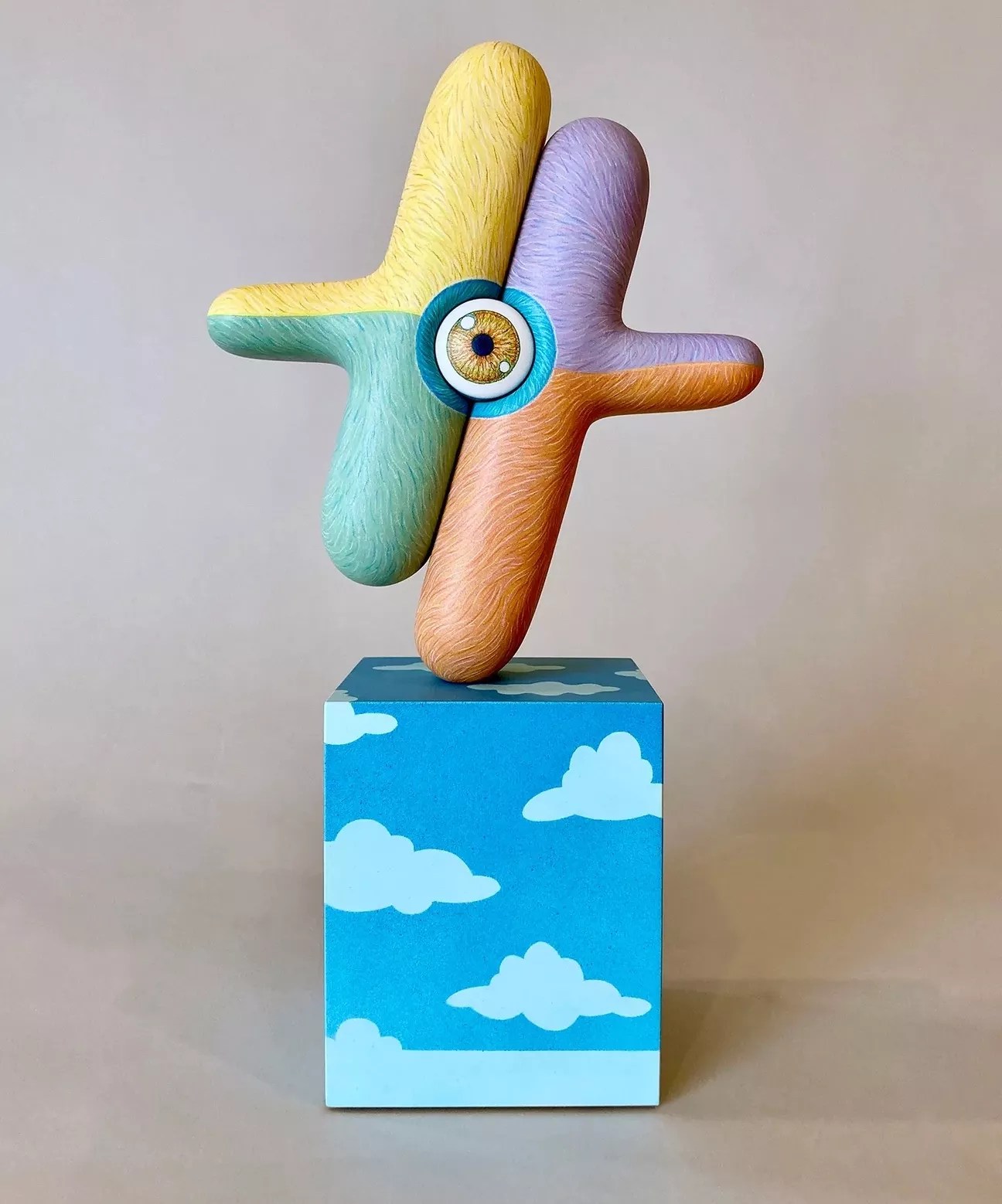 Sean O’Meallie, “Mr. Breezy Says Nothing,” 2022, painted wood.