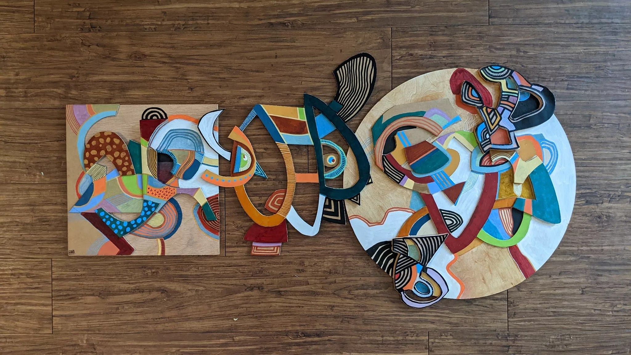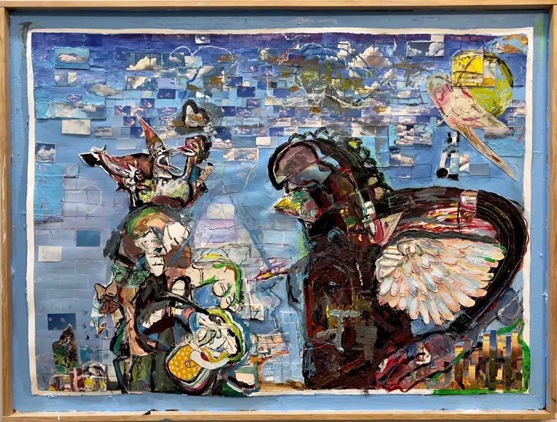 Dan Drossman, “We Must Keep Betraying Our Ghosts, mixed media on wood.”