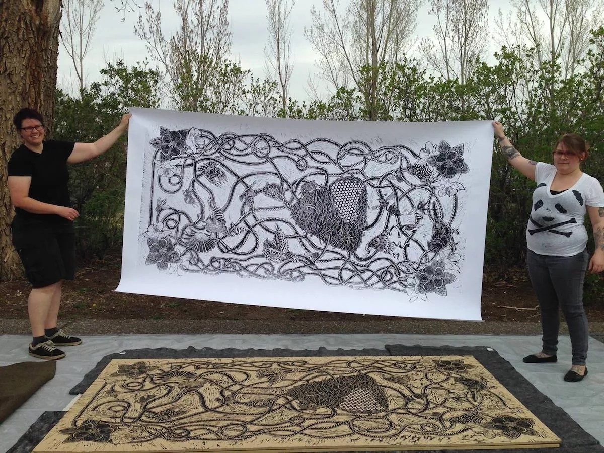 The Cone Zone typically signals the end of Mo’Print for another year, but it’s a really big climax. Participating artists will prepare humongous wood or fiberboard blocks that are placed on the pavement and pressed down by a two-ton steamroller. Prints will then be peeled off the block to be hung for a show in RMCAD’s Rotunda Gallery. We call that a fitting spectacle for Mo’Print’s last hurrah. Registration for printmakers has ended, but spectators are welcome.