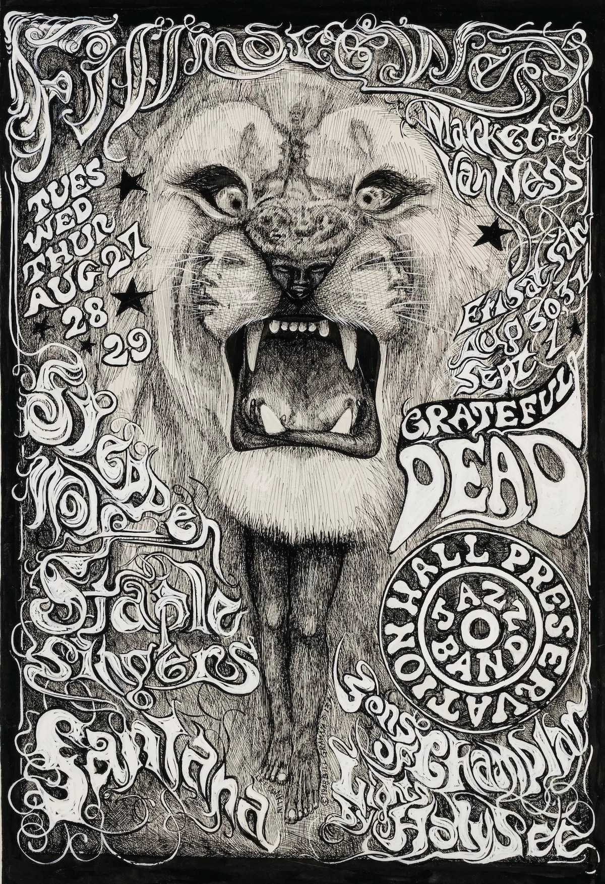 A prototype drawing by Lee Conklin of the lion image used on the album Santana, 1969.