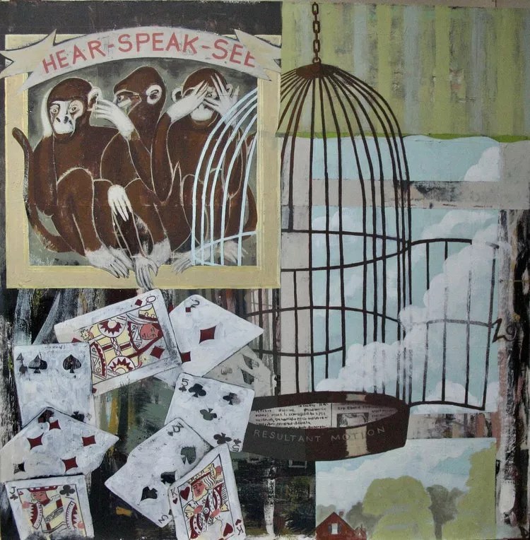 Edge’s foursome includes a series of drypoint prints of rock formations native to the Southwest by Sue Crosby Doyle; Nolan Tredway’s Soft Mutations stars a group of under-par works he created during the pandemic and has now reworked with more pleasing results; Heather Hauptman mused on the idea of What if She…the absence of the divine feminine in the patriarchy using fiber, photography and poetry that she’ll read at 7 p.m. during the opening reception; and Kerem Smith-Stone’s new works for Cloud Singers Show examine what it takes to find Black freedom.