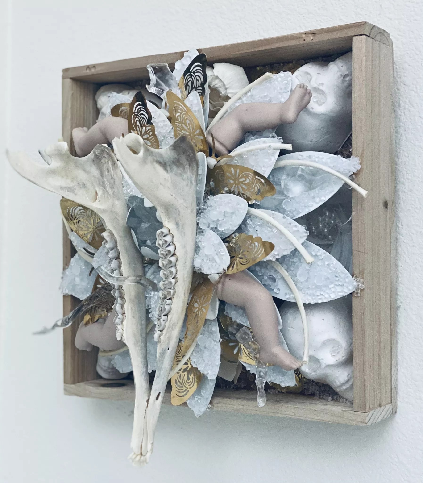 Artist Adrienne DeLoe, who’s already gained popularity for her assemblages of insect bodies embellished with other natural adornments, focused on macro photography for her new member show at the Next Gallery co-op. DeLoe homes in on the delicate structures of bones, seed pods, mold, barnacles and other textures from nature for Small Wonders, a show that will let you see the natural world in a whole new way. Heidi Calega, who views the natural world as the daughter of a biologist, pitches in with her own show of elaborately beaded, repurposed and embellished animal portraits.