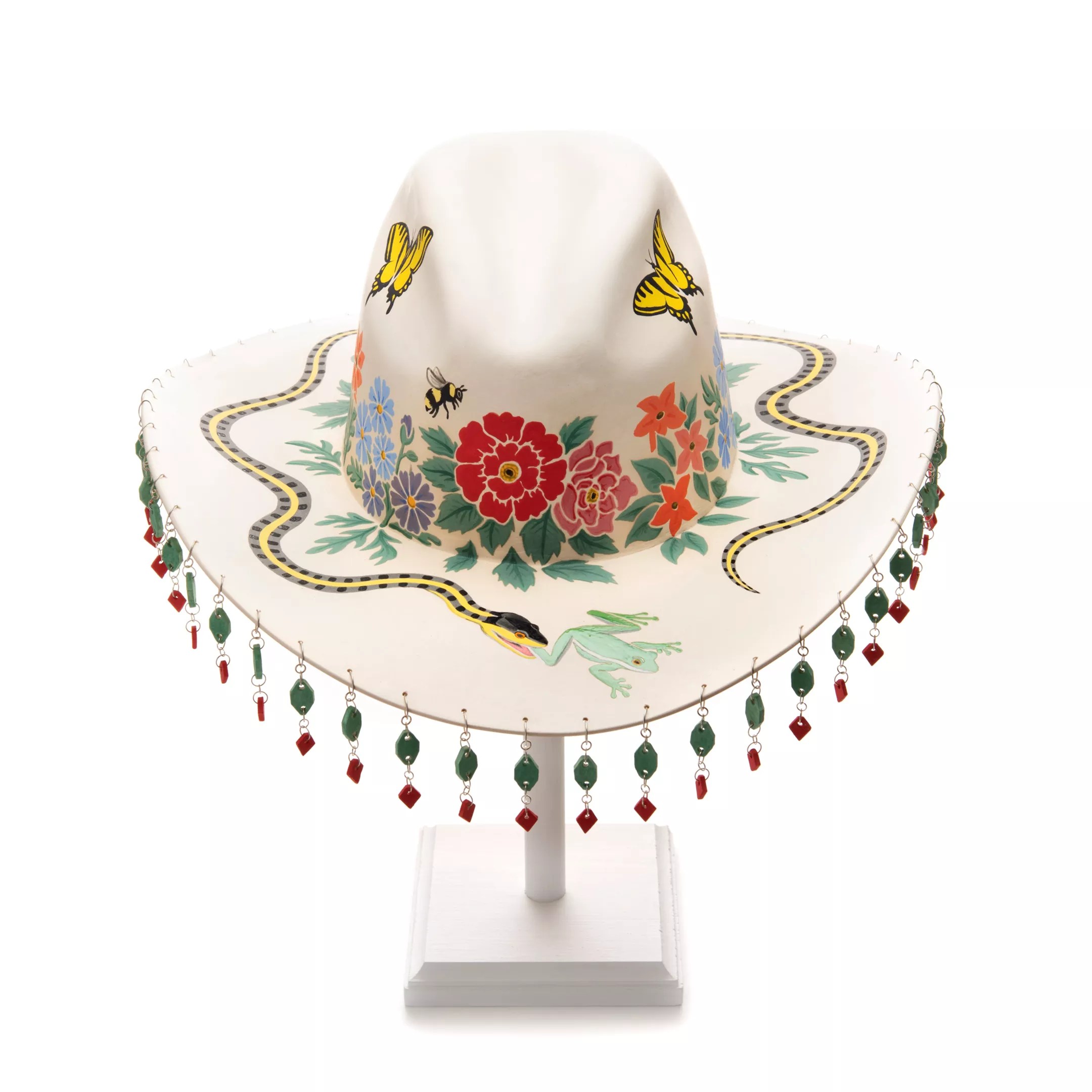 Shea Bishop, “Garden Variety Cowboy,” 2021, ceramic, underglaze and silver.