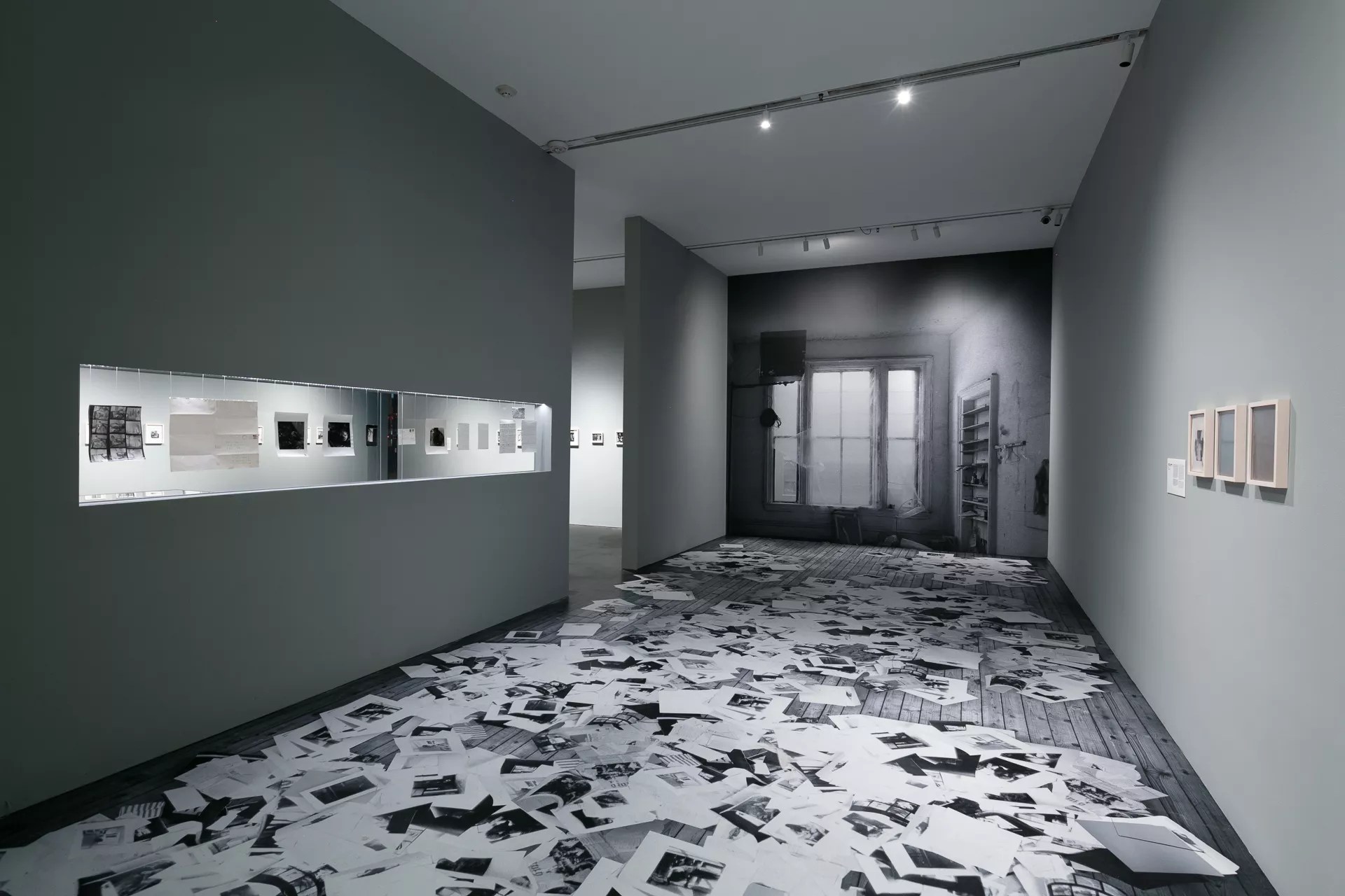 A facsimile of Francesca Woodman’s studio using enlargements of a George Lange photo.