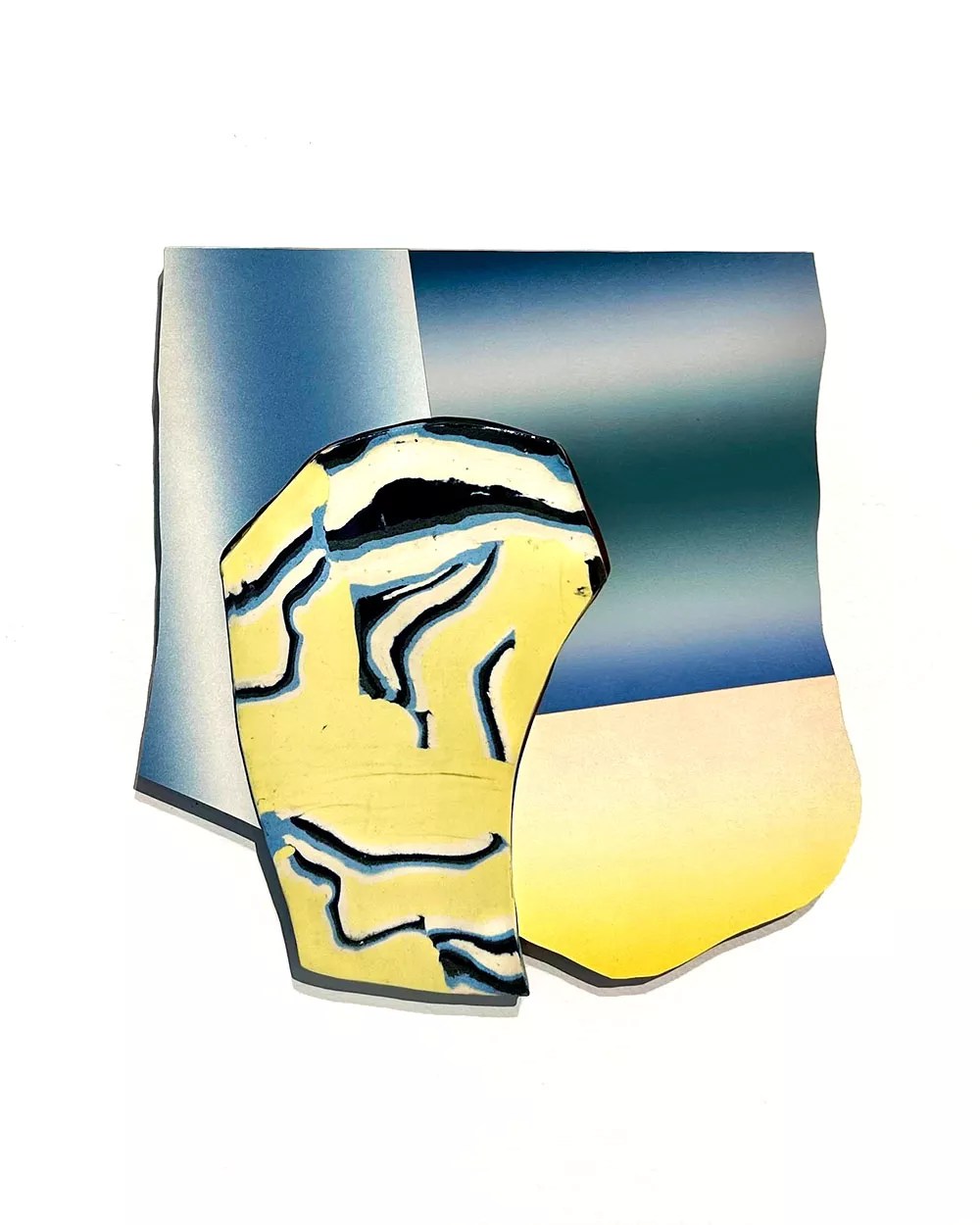 For her PlatteForum show, Holtsnider is experimenting with incorporating ceramics into her collages for the first time. Though these pieces are also abstract, she grounded them in her vision for what the 27 square miles of Suncor could be if the refinery were to disappear: affordable housing.