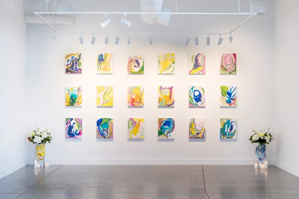 Over in RiNo, ATC/DEN has also found itself on the right side of gentrification. Like Space, it’s in a newish building that moonlights as an event venue. This is a much smaller operation, though, so instead of big weddings, during off-days and evenings the gallery is filled with intimate ones, and with meetings and other gatherings. Laura Moretz Krudener, a painter who has shown in the area for the better part of the past ten years (including at Space), opened ATC/DEN a year and a half ago. Until now, she’s painted under the surname Krudener, her married name, but she recently decided to switch to her birth name, Moretz, in honor of her grandmother, Maude Moretz, who was also a painter and an arts advocate. In The Hands of Grace: Laura Moretz the current show at ATC/DEN, highlights her most recent paintings.