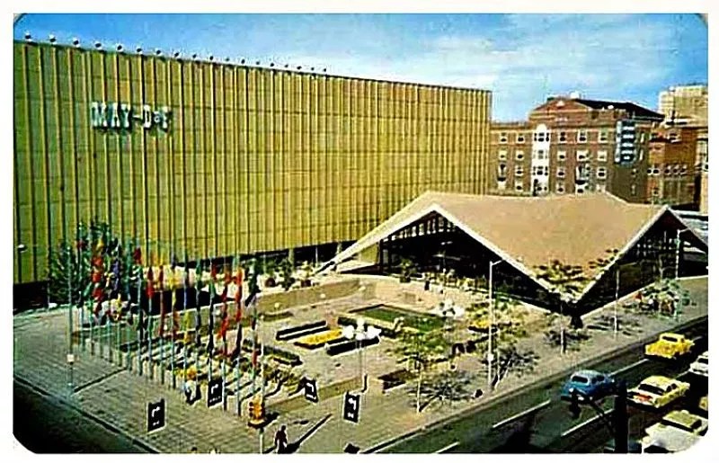 Adding insult to injury, “Ballerinas” was a consolation prize for losing the I.M. Pei-designed hyperbolic paraboloid at Zeckendorf Plaza. Constructed in 1960, decades before the 16th Street Mall (complete with Pei’s pavers) cut through downtown, the paraboloid served as the entrance to the old May D&F department store.