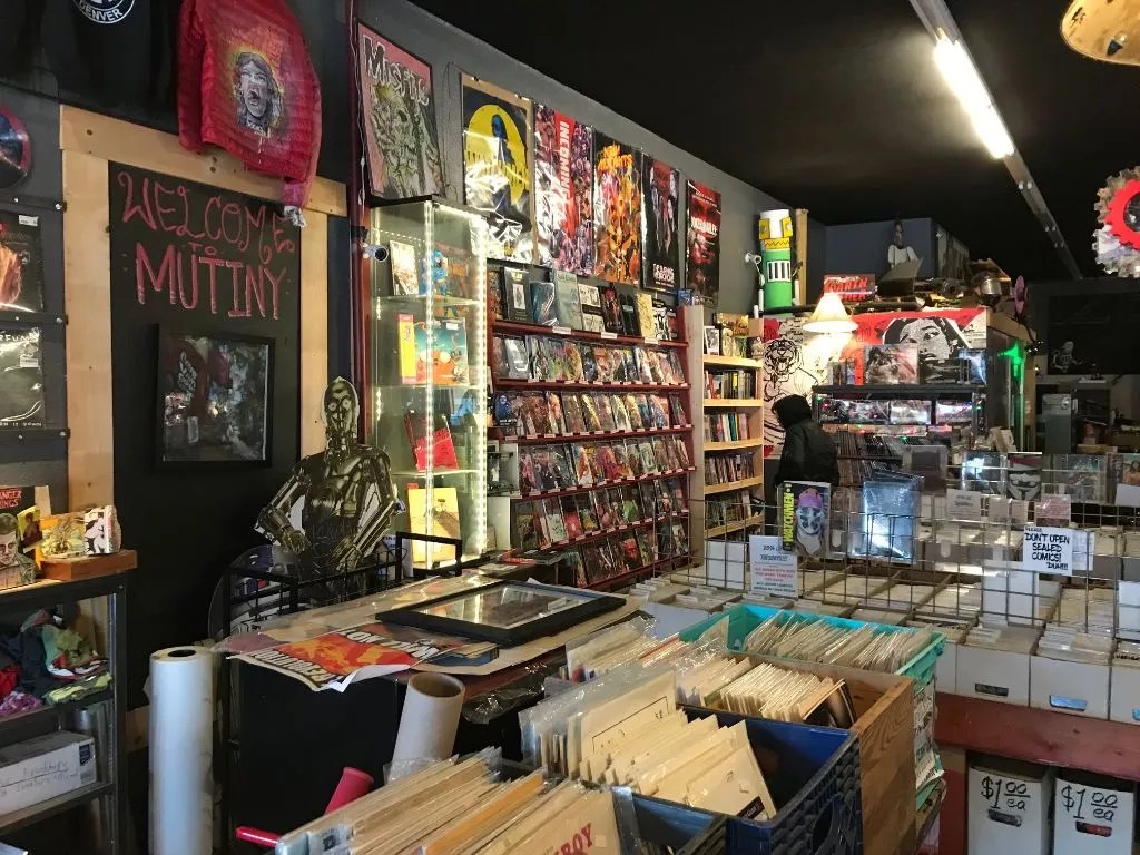 If your nerd-tastes (or that of your recipient in question) are less about spandex and super-heroics and tend more toward indie comics, small-press zines, and awesome stuff from used vinyl to obscurely referenced shirts and hoary tomes, then Mutiny Information Cafe might have what you need. If nothing else, it’s a good place to hang out for a while, have coffee, listen to whatever music’s playing, and soak in the absolute cool.