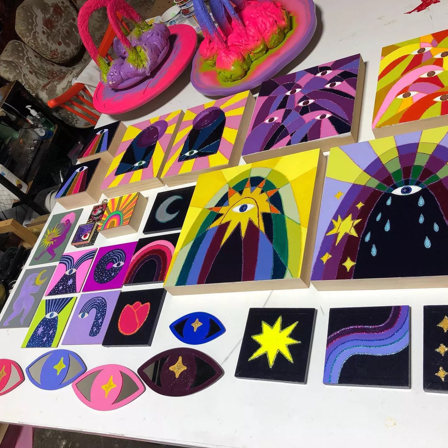 Katy Zimmerman brings a new load of paintings, sculptures and wearable art to Boxcar. Expect a mishmash of moons and stars, eyeballs, feminism and open-minded spiritualism to spin around Zimmerman’s cosmic world.