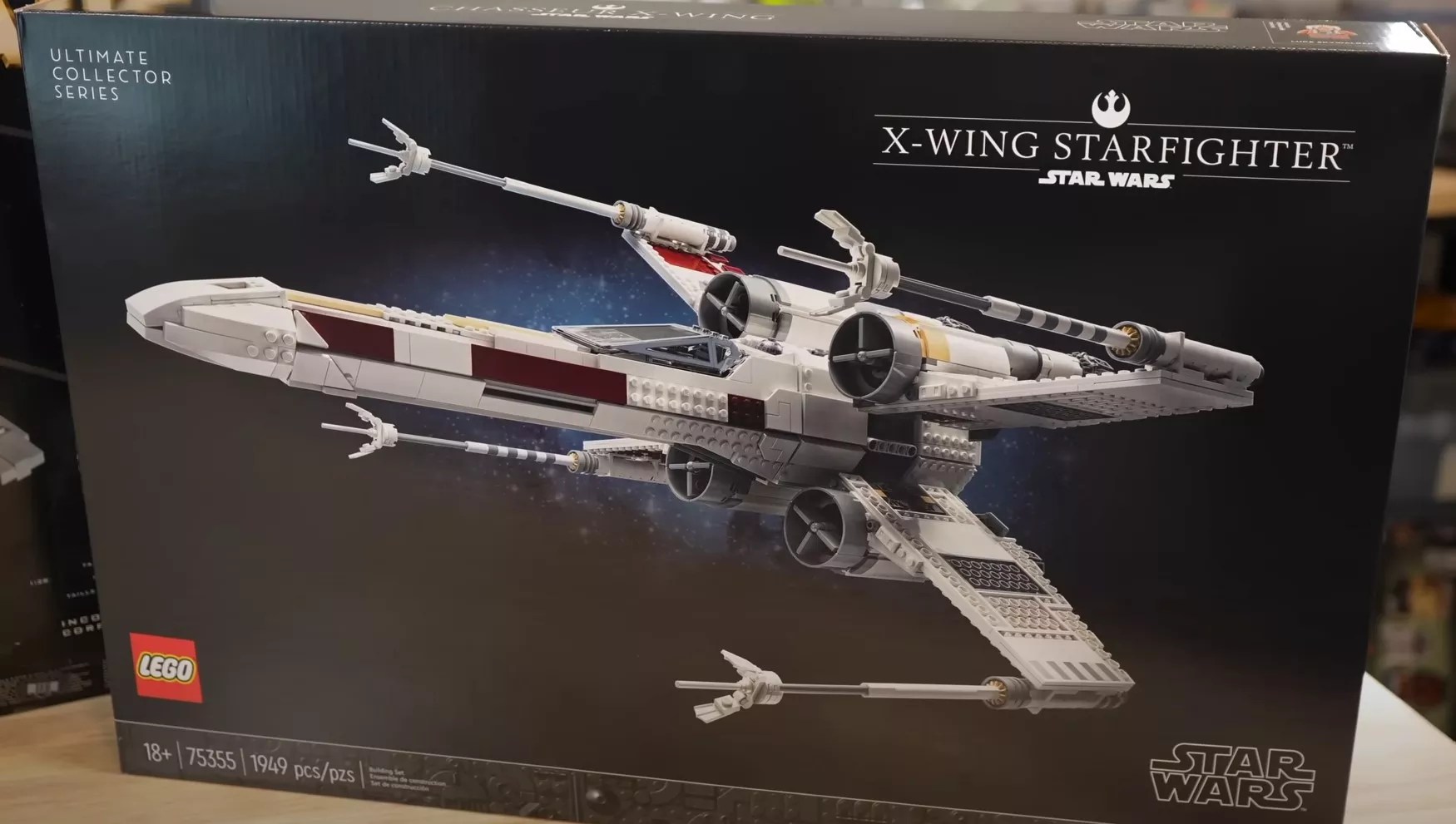 The 2023 Ultimate Collector Series LEGO X-Wing, which has 1,949 pieces.