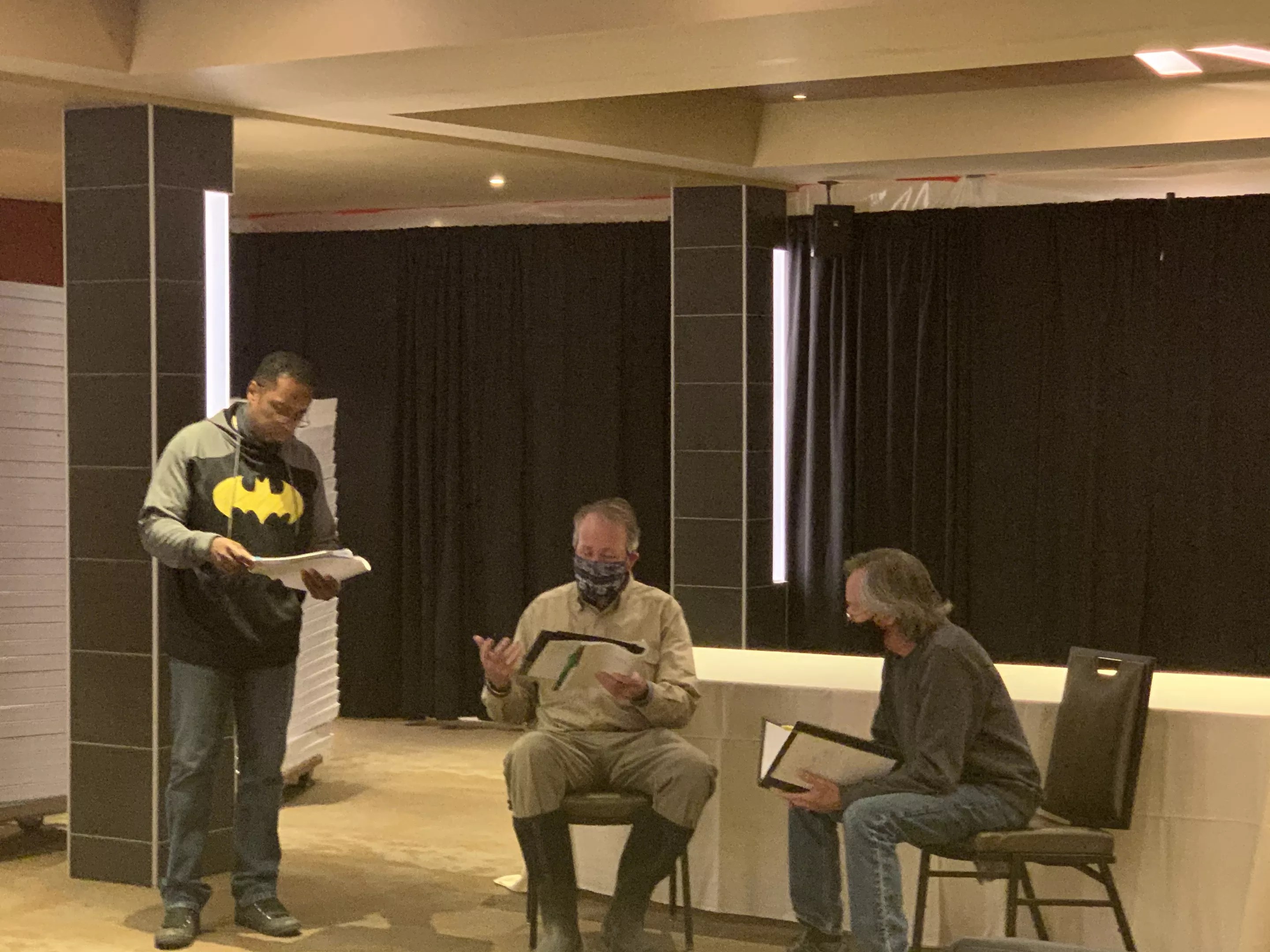 LeBlanc, Schoenradt and the cast of eighteen members have rehearsed Prohibition since October 2020 over Zoom. “We rehearsed over Zoom until February, where we began rehearsing at Mount Vernon Country Club,” LeBlanc says. “We switched to the yoga studio at Genesee Mountain Fitness Center in April.”