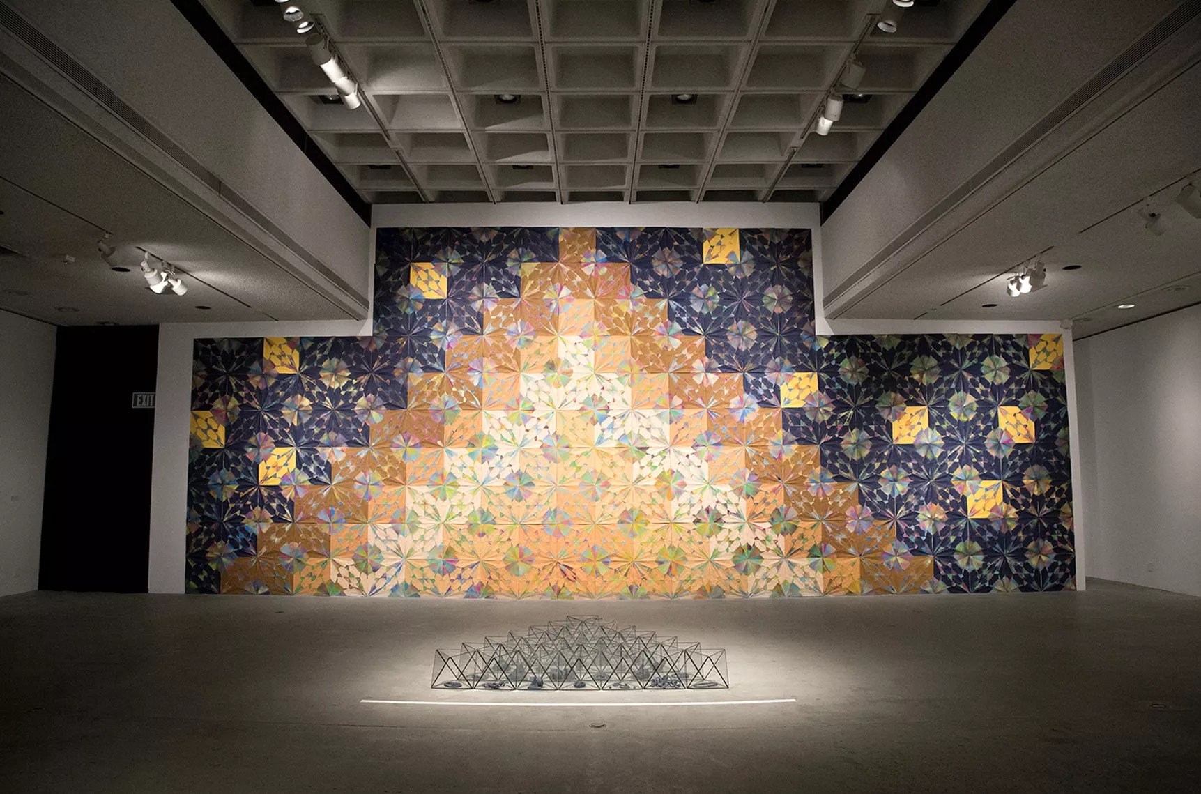 A relative newcomer to Colorado, artist Christine Nguyen arrived from California with a résumé that boasts an international reach and a mixed-media practice as big as the cosmos that inspires her. Nguyen applies her skills and a respect for nature and science to photo-based, large-scale public artworks and installations, incorporating unusual natural materials, from salt crystals to meteorite dust. Other works involve elaborately cut and folded surfaces, spray paint, cyanotypes, glass and ceramic elements or dried plant matter, sometimes all mixed together.