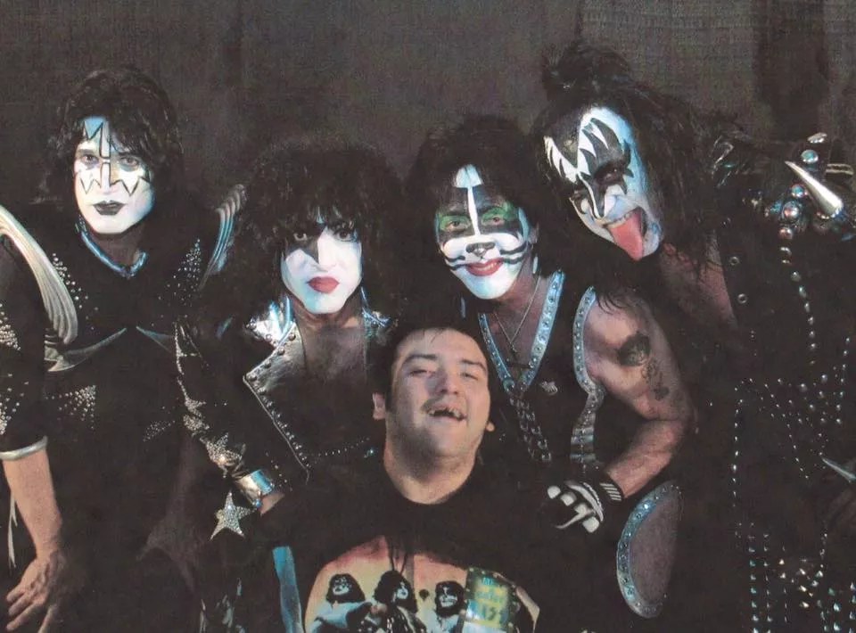 Chris Fonseca poses with members of the band Kiss.