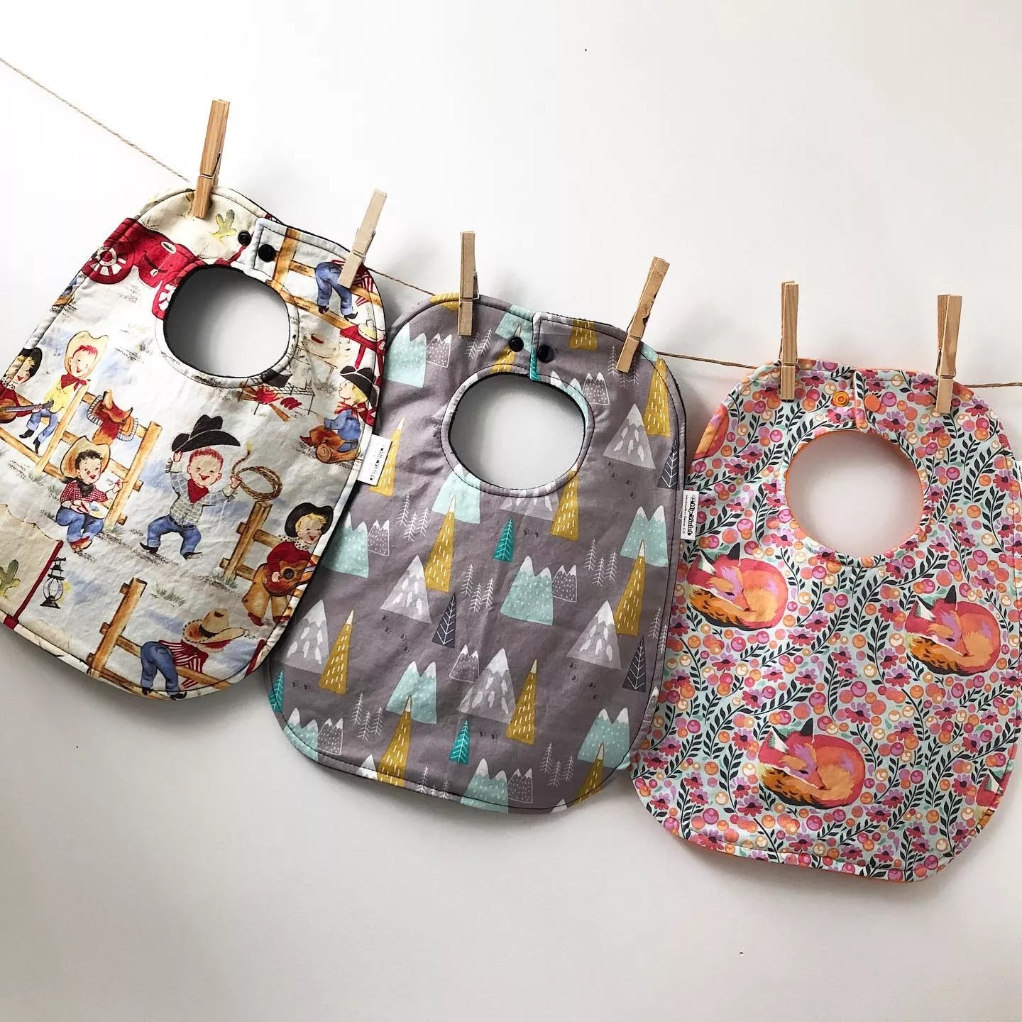 Hip Violet bibs not only cover the whole front of the kid, but they have strong snaps and fun patterns.