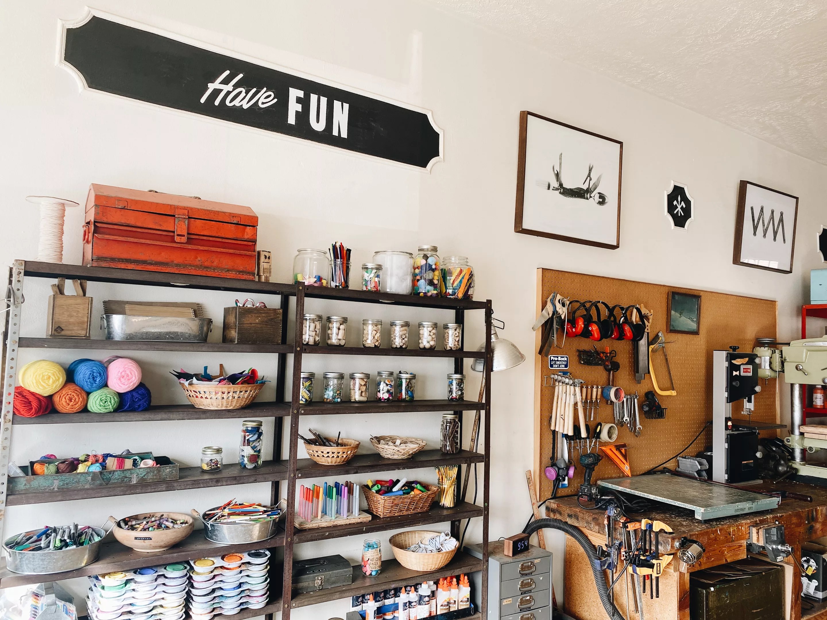 One of the first steps to successfully starting a craft habit in your home is to make a space for it with your child. While it may be easier for you to design a place for them to work, and may even be better than what they come up with, it’s important, says Holton-Fessler, for kids to have a say in their own workshop.