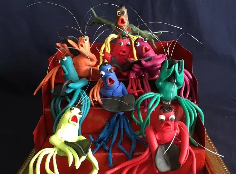 Knoll’s book club isn’t alone in its admiration for Owens’s novel, which is set in coastal North Carolina and invites the reader to wade into the marshes of a lush and possibly dangerous landscape. The bestseller is a coming-of-age story – heartbreaking in its details of the protagonist Kya, who is abandoned in stages by her family and left to fend for herself. Knoll says the exhibit is meant to invite viewers to “be absorbed back into the narrative through paintings, ceramics and delightful papier-m’ché creatures placed prominently throughout the gallery.