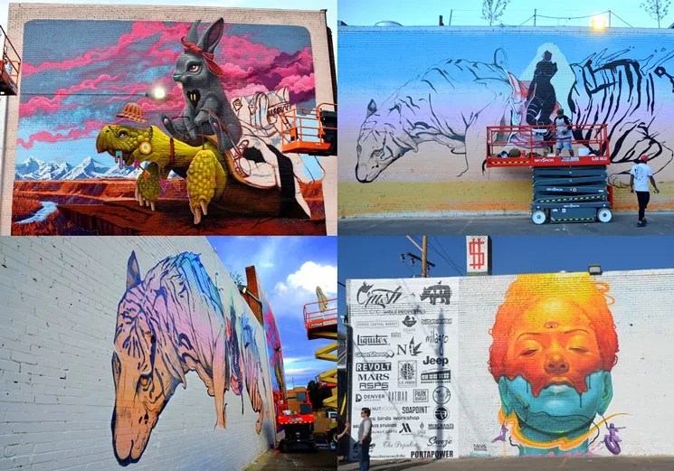 The organizers have big plans for this year’s CRUSH, which will run September 11 through September 17 – in RiNo, of course. The festival’s “expanding footprint,” as Hendershot calls it, will stretch from 24th and Arapahoe streets to East 40th Avenue and Williams Street, creating a network of murals that extends well past last year’s approximate territory of Larimer, Broadway and 25th to 30th streets (here’s a map of the current murals). And even previously painted alleyways will be reinvented; 90 percent of last year’s art will be painted over with something new. The festival itself will include new components, including a lecture on the history of graffiti and informational content on mural copyrighting.
