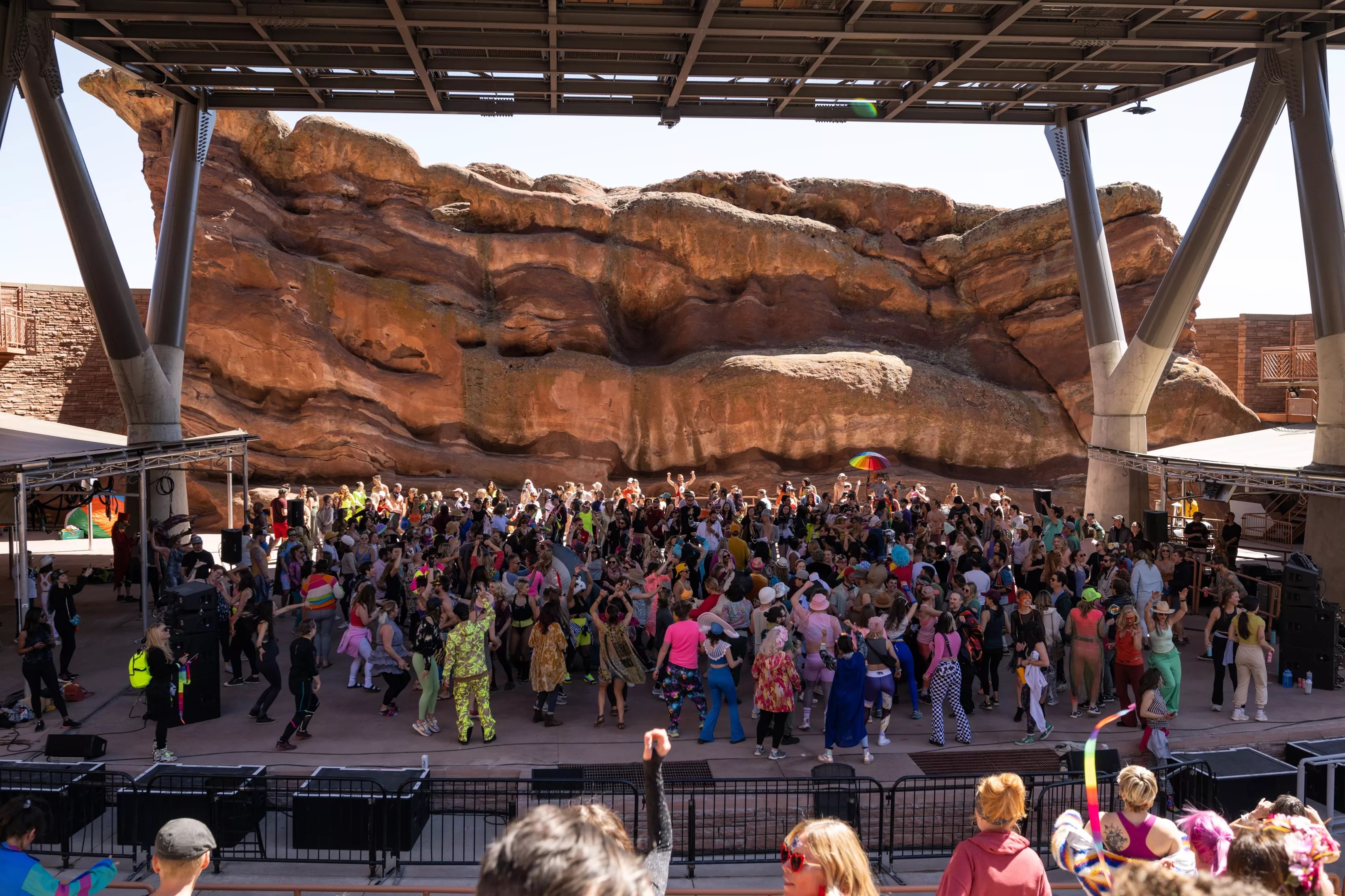 “We were the first ones at Red Rocks to bring the entire audience to dance on stage so that the community became the performance art, which is a really, really cool thing that never ever happens at Red Rocks,” Agrawal says. “It was very special.”