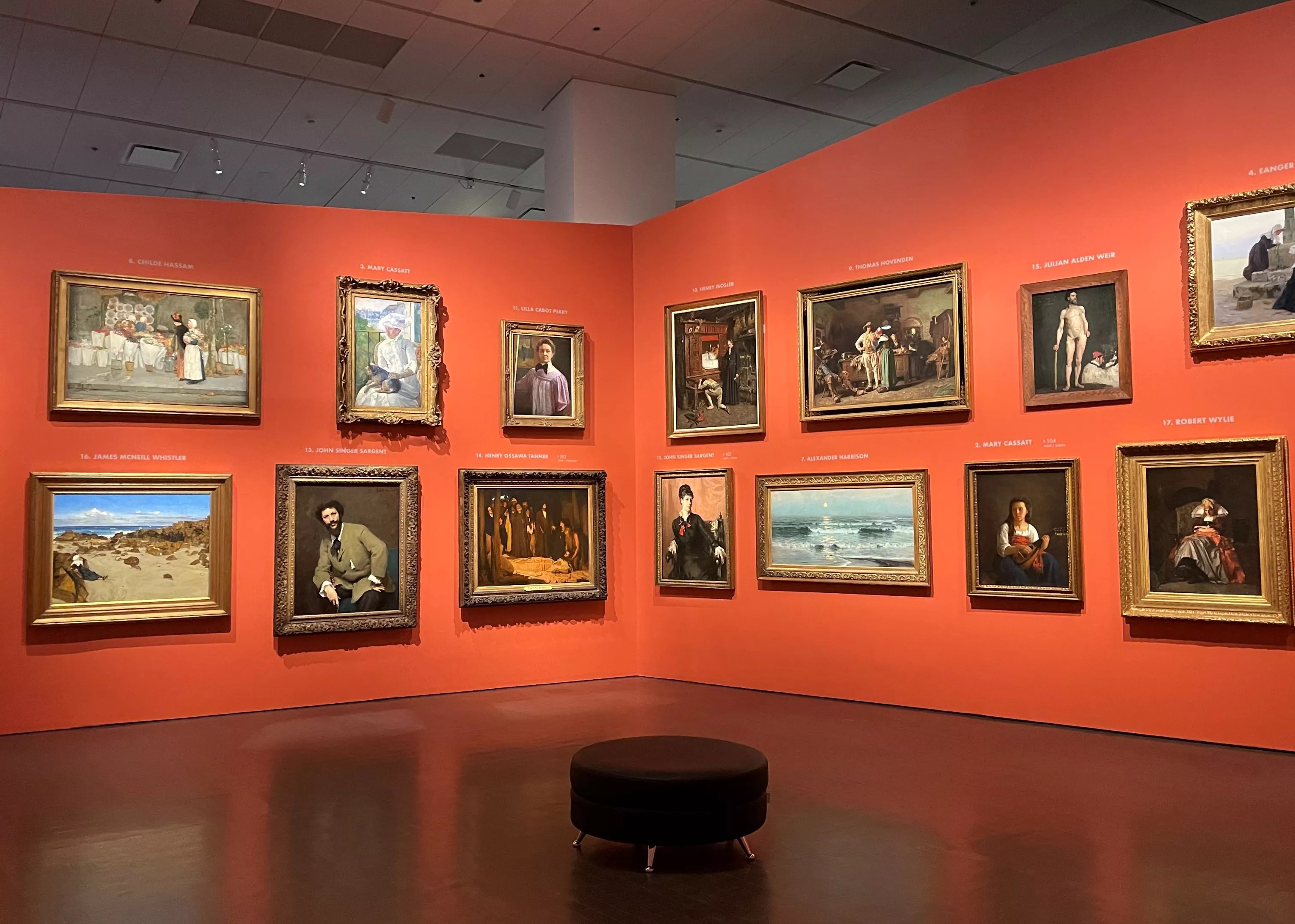 The first of several crescendos comes with an imagined version of a corner of one of these salons, where the paintings hang above each other on a pair of vividly painted red walls. The selection, including pieces by Sargent, Mary Cassatt, Irving Couse, Frank Boggs and others, is a show-stopper. The show then moves on to several tangents, such as “Countryside Excursions” and “Around the Table,” with a number of little treasures, among them atmospheric landscapes by Whistler, Winslow Homer, John Twachtman and Theodore Robinson, whose smeary “The Old Mill in Moonlight, Giverny” knocks on the door of abstraction. Also choice is the series of small works depicting oyster gatherers by Sargent: These are beautifully done, expressionistically realist but on the verge of impressionism, with the artist seemingly having slapped the paint onto the canvas in a frenzy of brushwork.