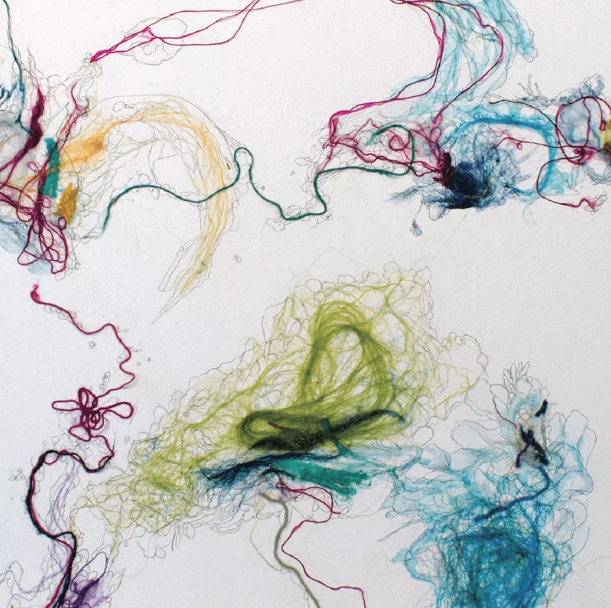 Emma Balder “paints” with fiber and stitches together fabric collages to create textured works with a natural feel. She’ll be guesting through August at Jamie Hollier’s Olde Town Arvada artisan jewelry shop, Balefire, which opens its doors on first Fridays along with fellow businesses dotting the charming business district.