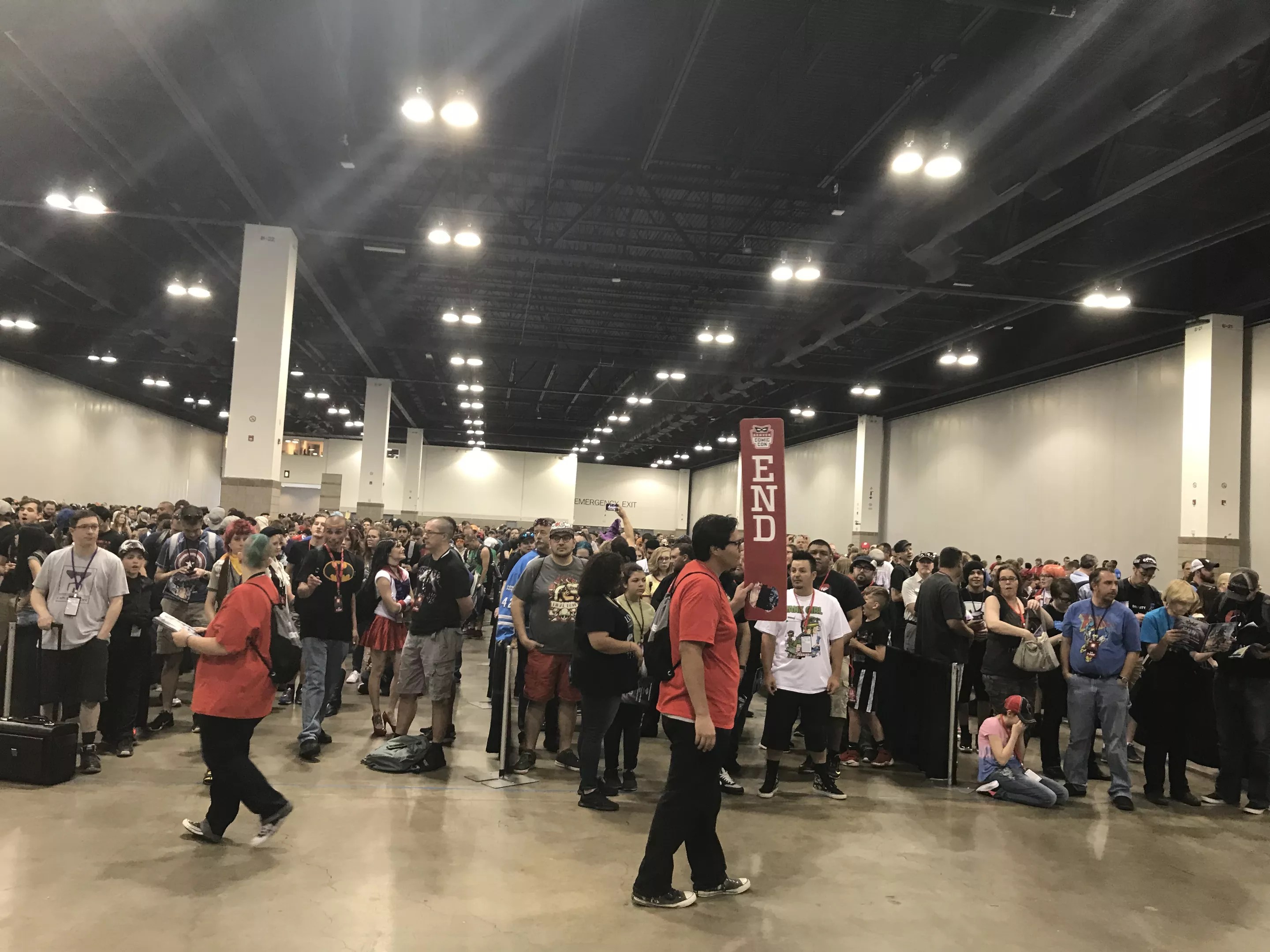 It’s just a reality of an undertaking as huge as Denver Comic Con: crowds (and the significant lines caused by them) are gonna happen. This was the crowd that had gathered just minutes before they opened the floor around 10 a.m.; it snaked around this room, down some stairs, and out into the Colorado Convention Center lobby. “It’s not my favorite part of the day,” said one attendee (who was either dressed as a de-clawed Wolverine or was just wearing a white sleeveless undershirt). “I just think of it as the prelude to the awesomeness.” Way to be, almost-Logan. Way to be.