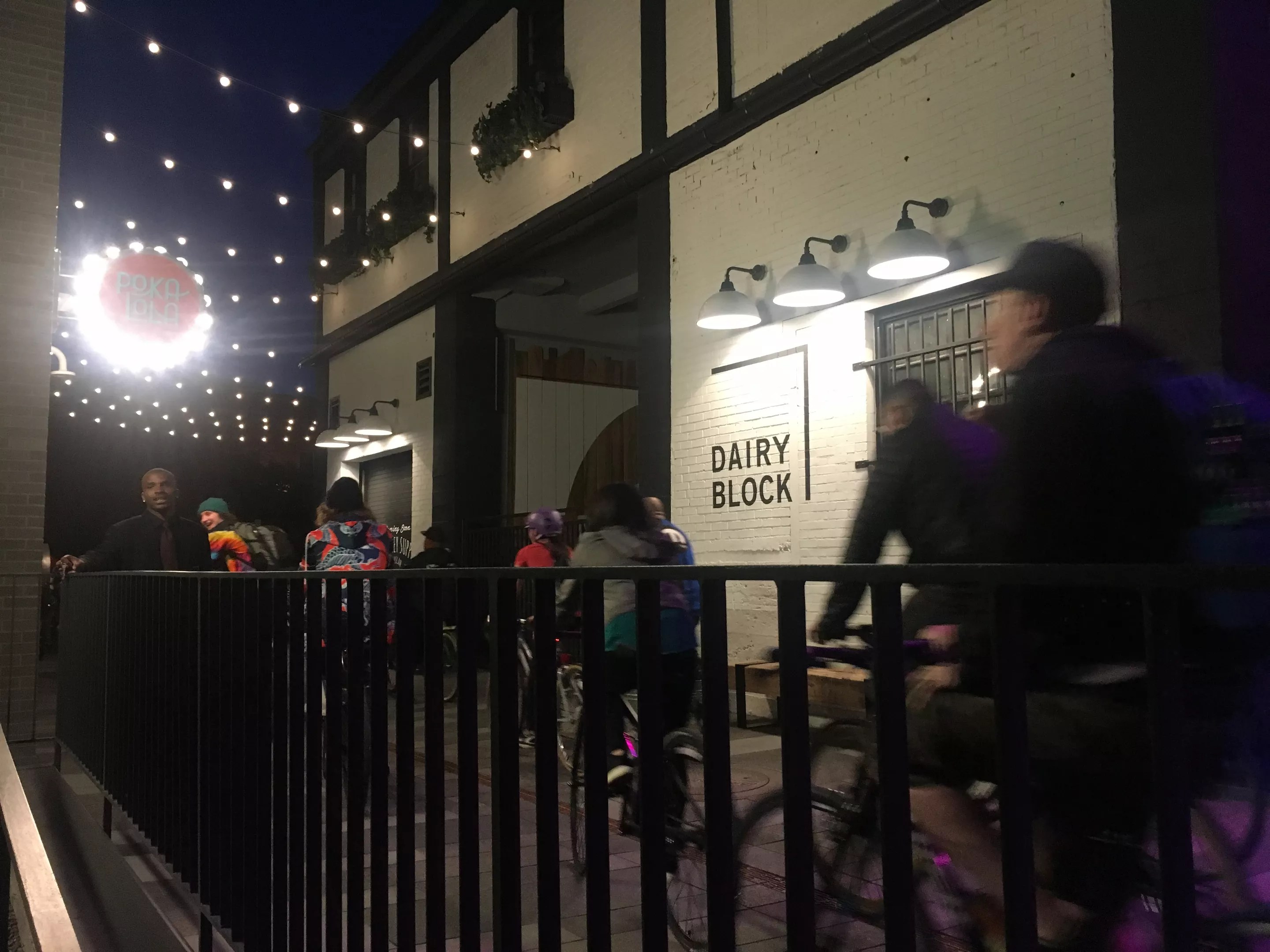 And they didn’t stop. After all, Denver alleys are generally open to bicycles. And while the Dairy Block bills this particular alley as “Denver’s first pedestrian alleyway,” the signs outlining rules for the space are not yet posted. After the Denver Cruiser Ride, though, they will be, and soon, at both entrances to the alley and on the Dairy Block website.