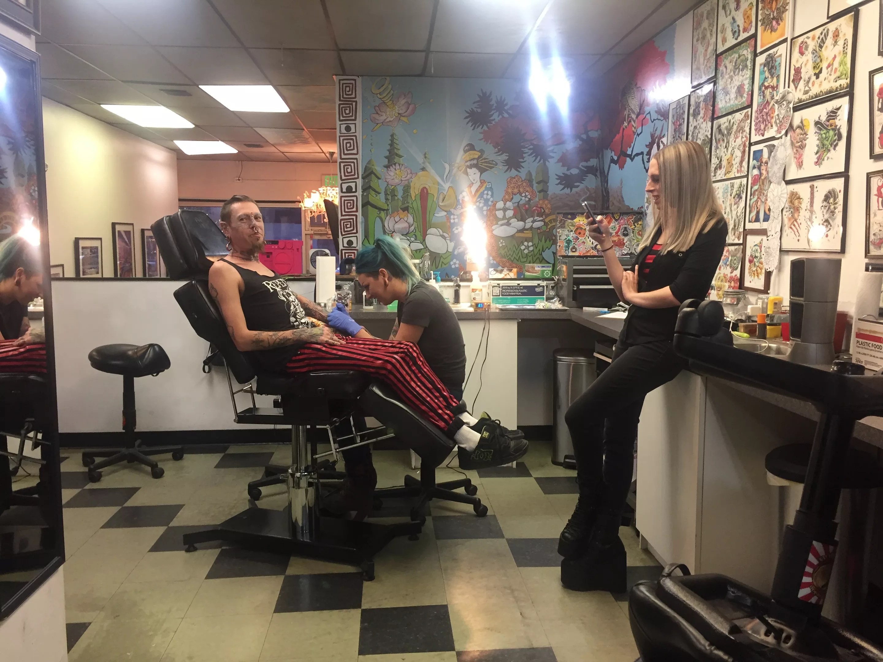Artist Kate Erso says Ricker is in her chair at least once a month. He allowed her to use him as her practice canvas during her apprenticeship. Today he is getting red circuitry tattooed on his right arm. Ricker says his modifications are not so different from the plastic-surgery modifications many celebrities such as Kylie Jenner get, except they lie on opposite ends of the spectrum.