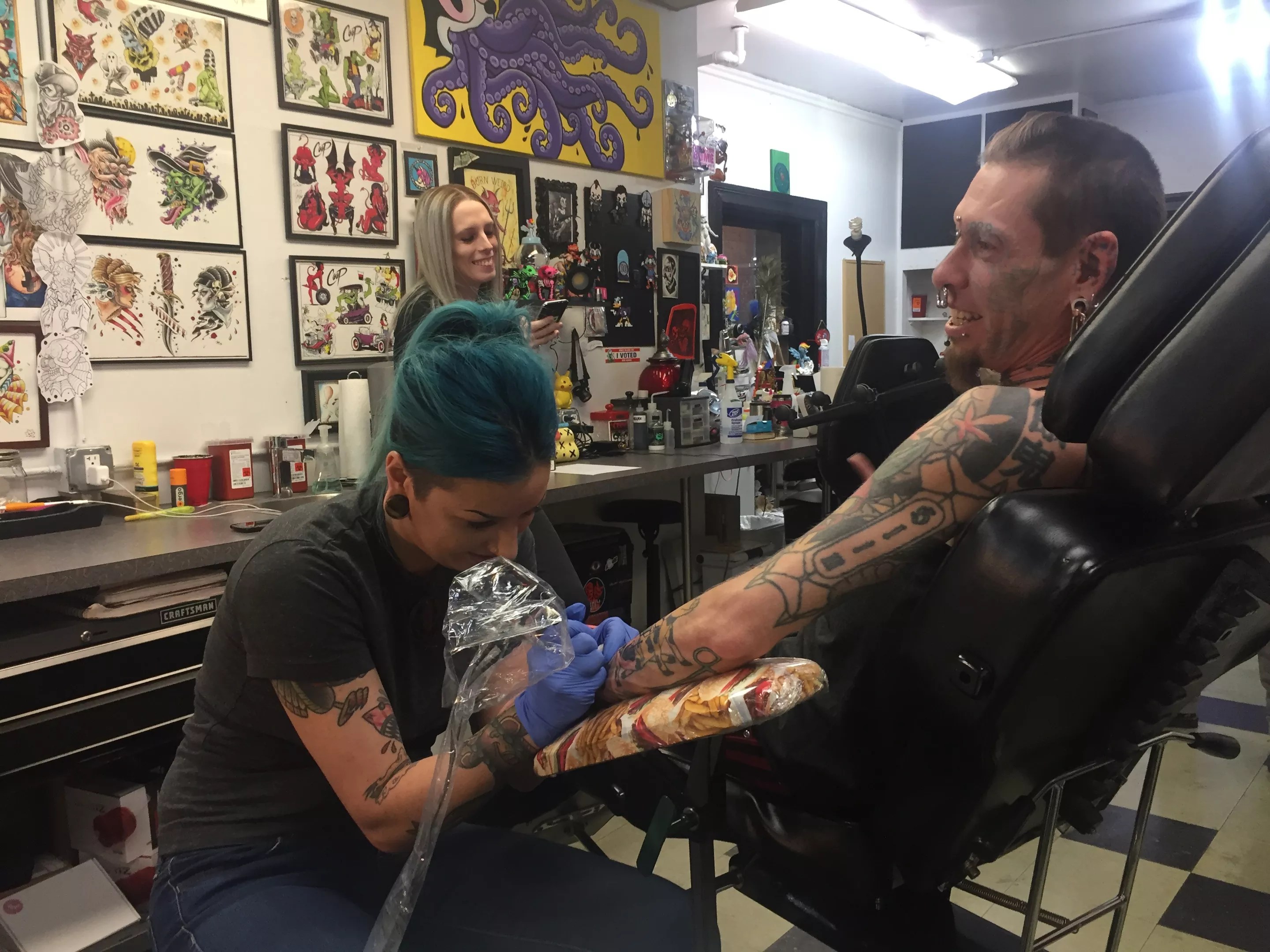 Ricker wants to see if the brewers can help him figure out the logistics of the trick. But we’re late for his 4 p.m. tattoo appointment at Fortune Cookie Tattoo and have to skip our second stop.