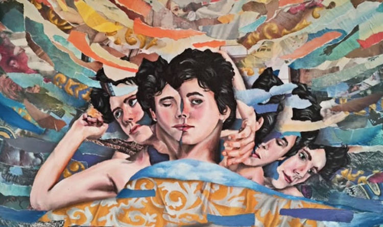 Raymond Gabriel, “Gilded Dreams of Sunset Eves,” oil and collage on canvas.