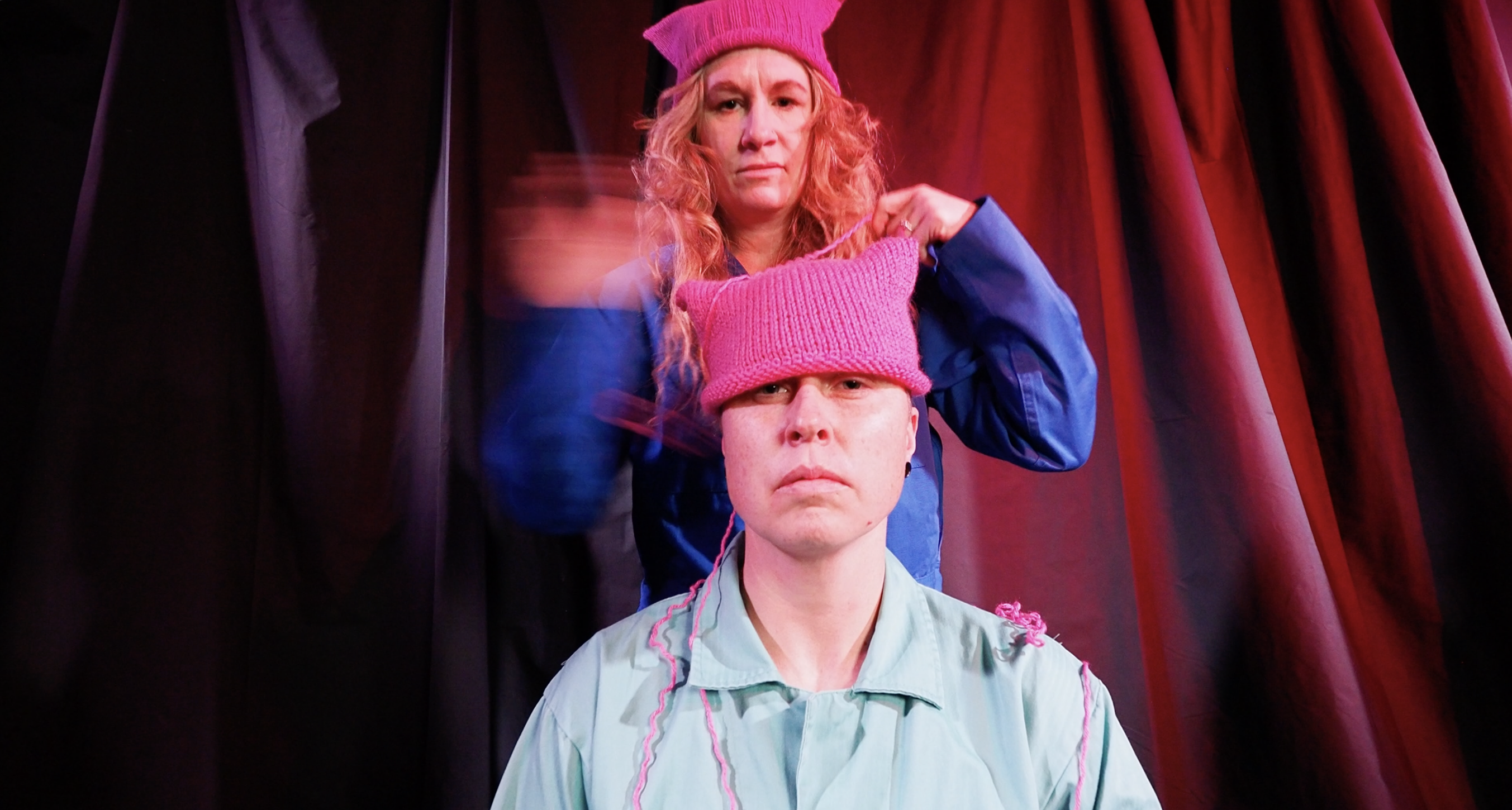A video performance still by Kenzie Sitterud for Happy Sad at the Firehouse Art Center.