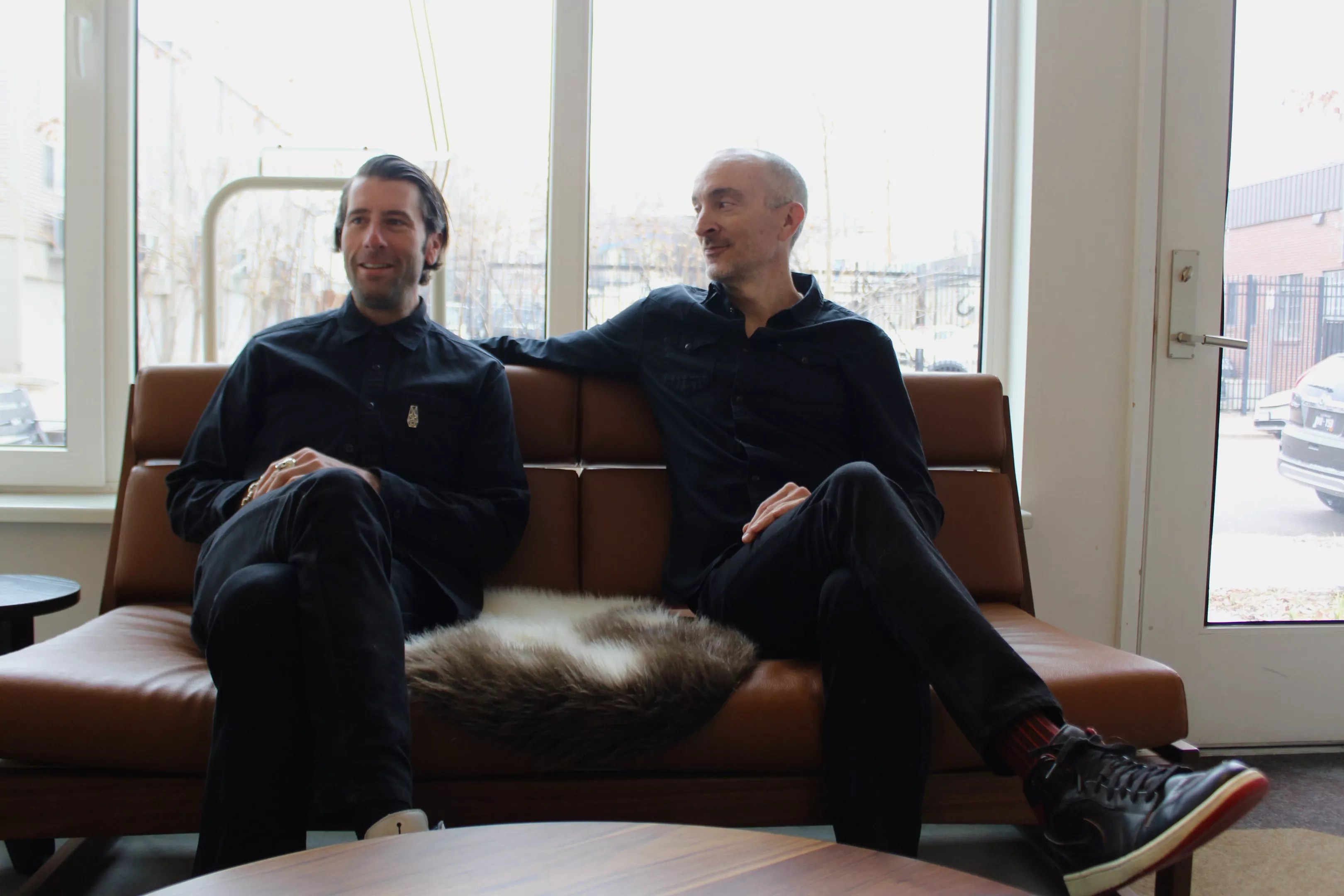 Dexter Thornton (left) and David Larabee sit on a couch they made for the DoubleButter showroom.