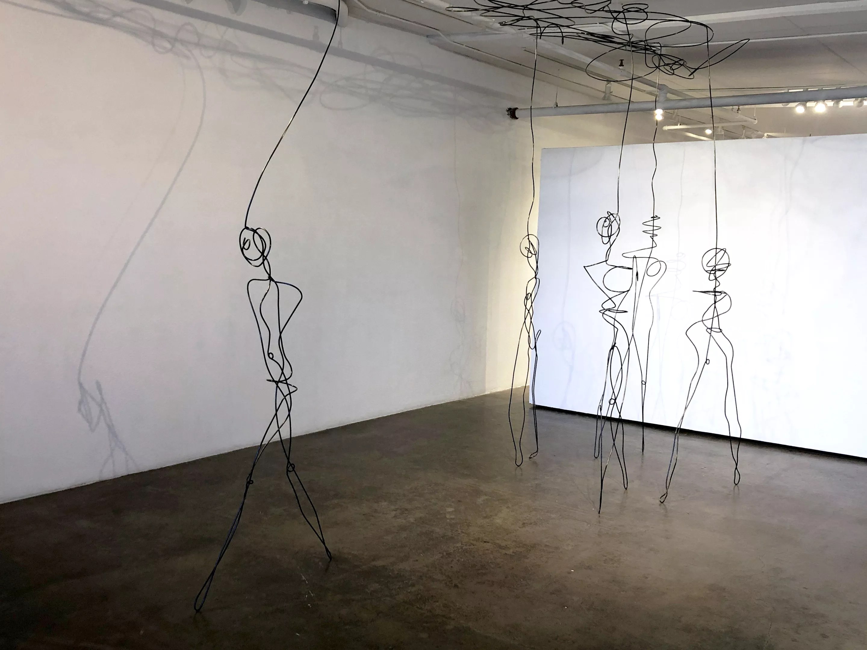 Gail Folwell’s figural group, “Universal Consciousness,” made of steel rods.