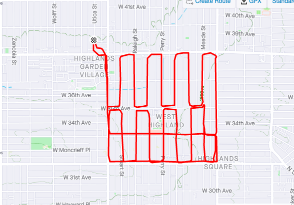 The Northglenn High School psychologist and cross-country coach identifies as on again/off again runner, but mostly on: He’s even finished two Boston Marathons. After the pandemic left him working remotely, he found himself bored not only of being confined to his Harvey Park home, but also tired of running the same routes. This led him to wonder: How long would it take to run all the streets in his neighborhood?