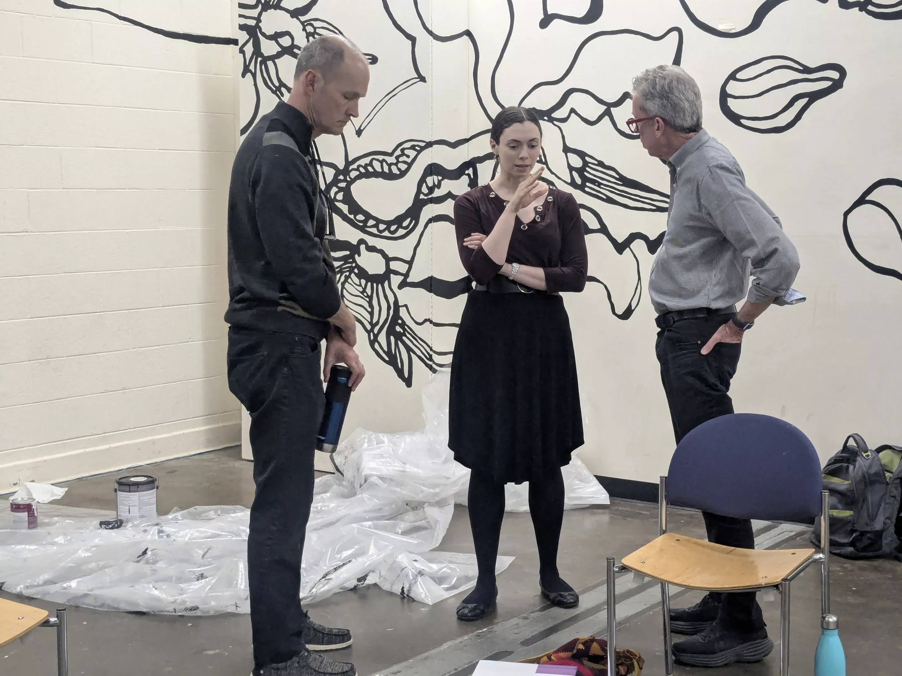 Director Bud Coleman talks with two actors as they rehearse for The Conversation Part 1: The Israeli-Palestinian Conversation.