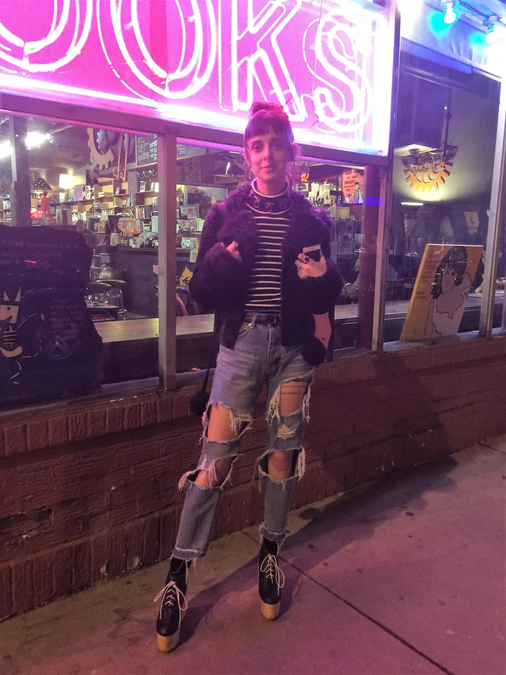 On a recent night roaming Broadway, we ran into Denver newcomer Genesis Webb, who had a style all her own. Although Webb is fresh from Seattle, “figuring things out and going with the flow right now,” she definitely has her personal style all figured out. We stopped to chat with her about her striking style, where she shops, and what inspires her aesthetic.