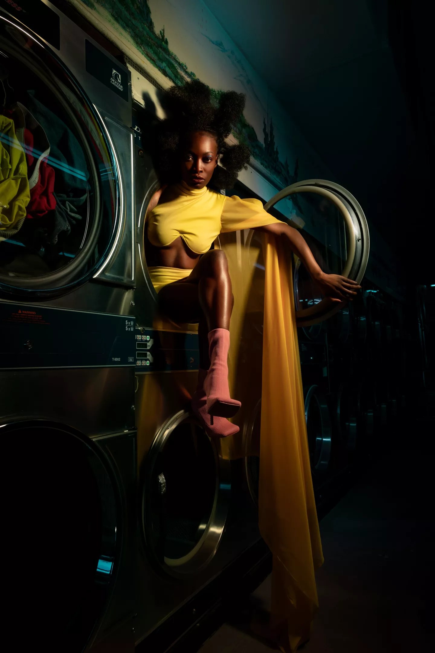 “People were a little bit like, ‘Whoa, what is happening?'” he muses. “With each model, I got dirtier and dirtier. I started using my hands as instruments. By the time the third model came out, I was just in my element, everything blacked out around me, and it was just me, the paint and the girl. I got completely drenched in paint, and there was this beautiful piece of art standing in front of everybody.”