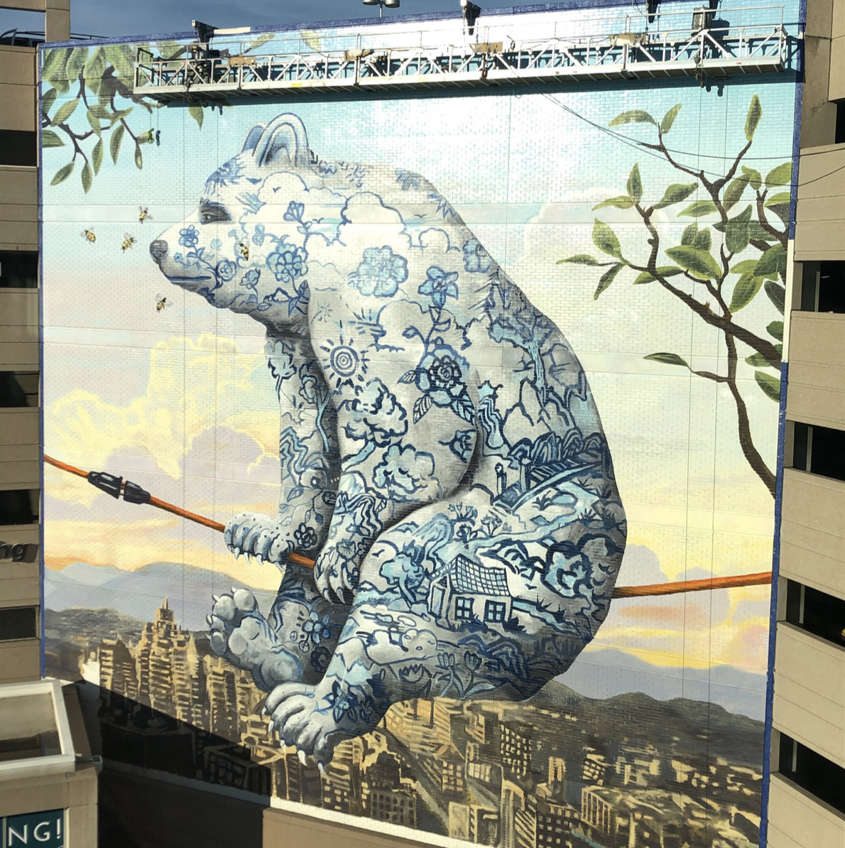 Breakable Bear, 65′ x 65′, 2019. Original painting by Kevin Sloan.