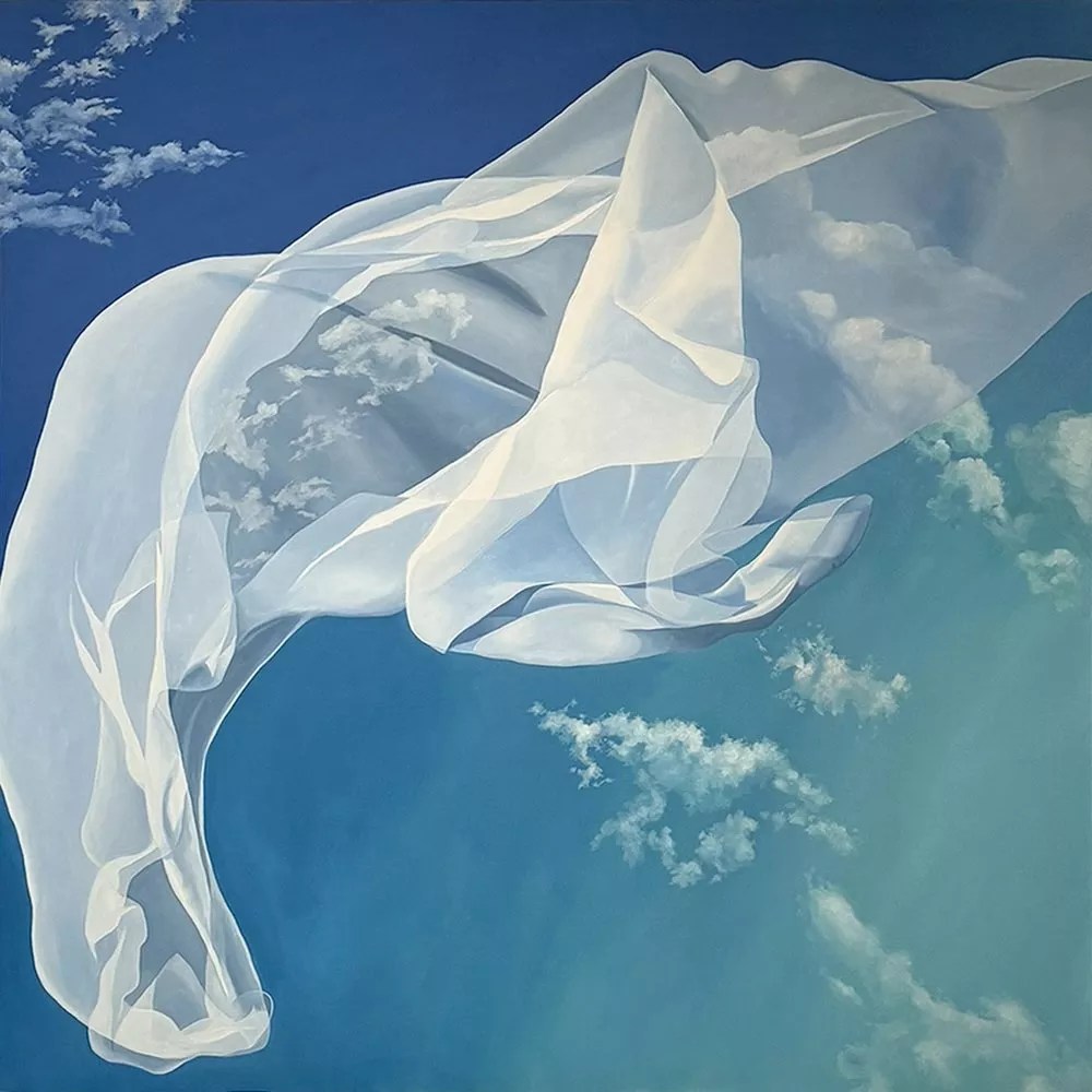 If you’re wondering how something as simple as a diaphanous length of cloth flapping freely in the breeze can evoke so many deep feelings, even artist Rick Barcelow, who has painted a series of such paintings for the exhibition Untethered at Bell Projects, has no solid idea: “Is it a wish we carry for ourselves? I don’t know,” he writes in his statement. The waving fabric is a mystery that might lead anywhere, but its image is downright majestic, especially when set against deep-blue skies in gradient shades.