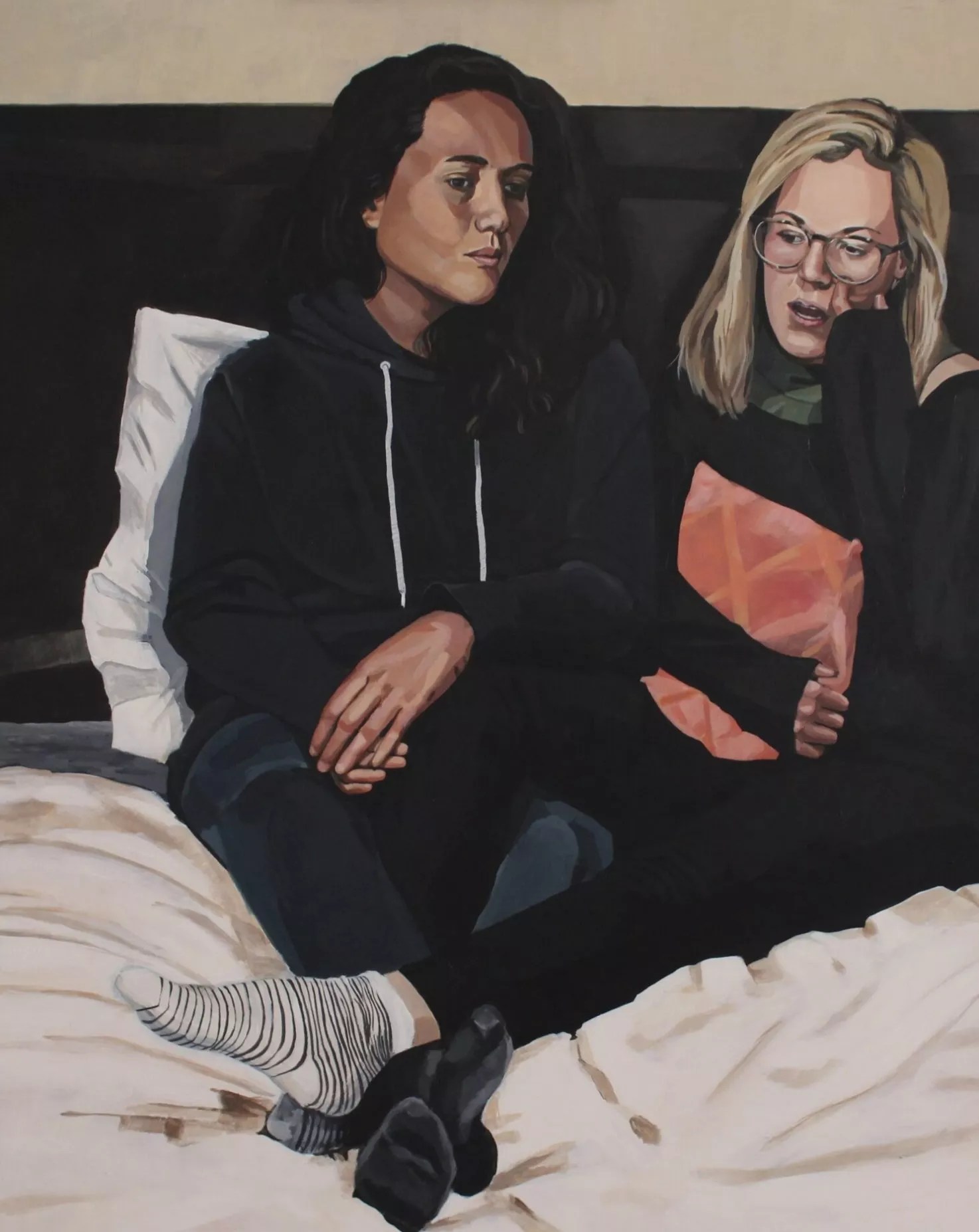 Denver artist Brady Smith presents intricate chair drawings and portraits of two friends communing at Kin Studio in Boulder. Smith opines visually on mental health through art practice and the healthy glow of human contact.