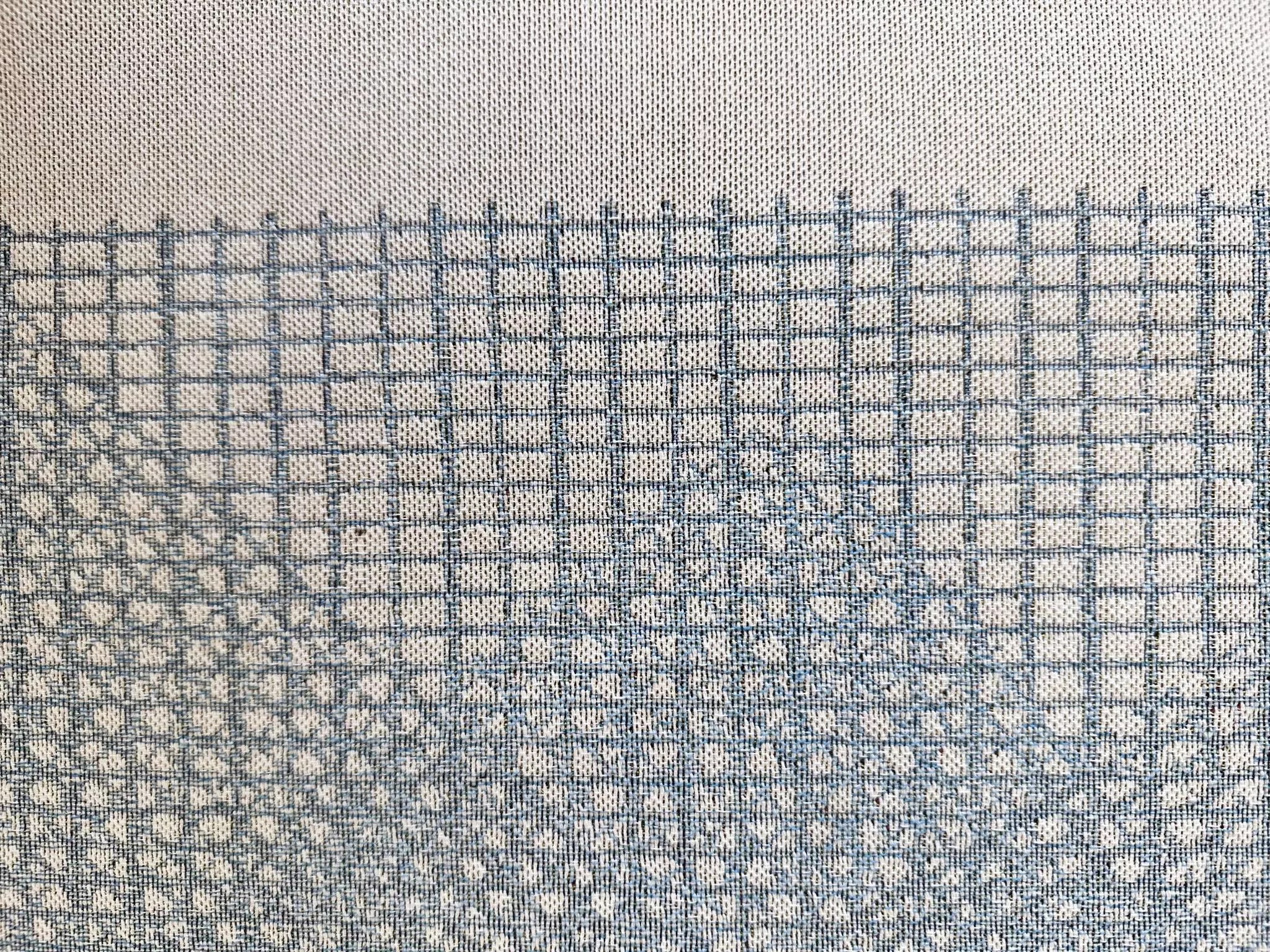 Ilan Gutin has also hung a show meant to be seen in sequence, and meant to evoke the safety of screens and woven textiles that guard your personal space from outsiders. At is now, is not the time began as a series of fifty gridded screen prints inspired by window screens; those images were converted into commercial-grade textured weavings on a Jacquard loom. Gutin hopes the installation heightens viewer observations and a sense of being at home in a protected place.