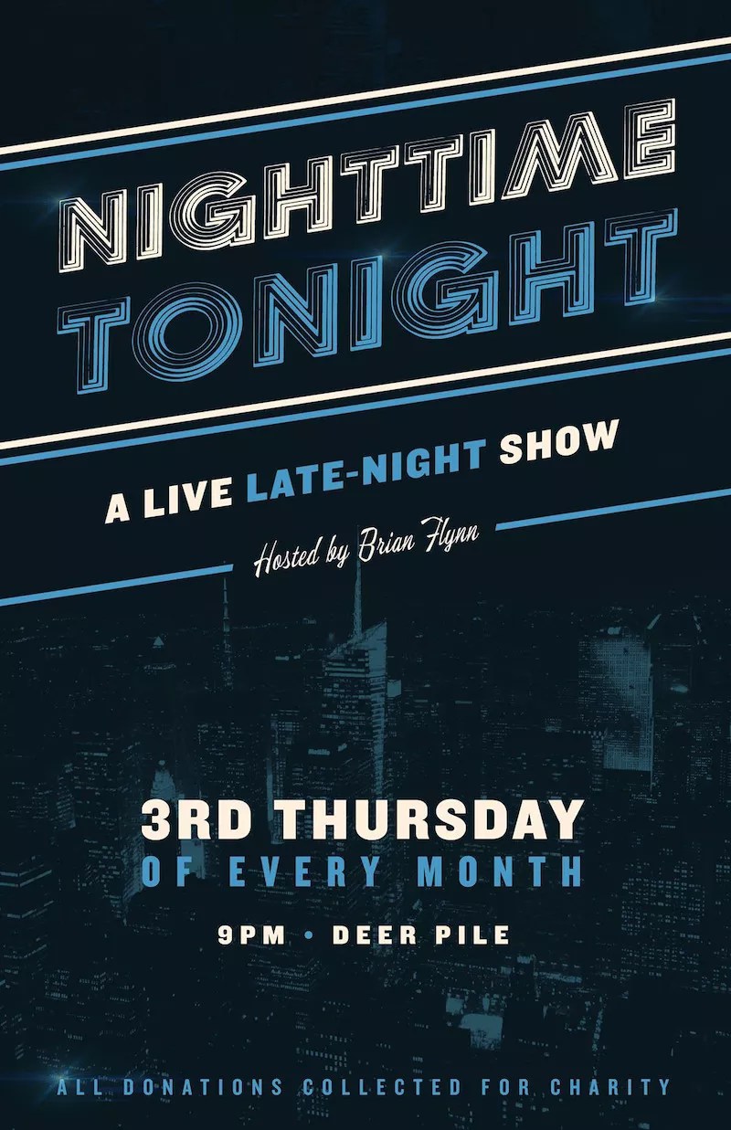 Brian Flynn, a local comedian and co-host of The Revisionists podcast, has been quietly working for months on Nighttime Tonight, a new comedy showcase molded after late-night staples like Conan and The Daily Show. Mostly, however, Nighttime Tonight is intended to be a place where the comedy community can gather and indulge creative whims. Flynn and company will be collecting donations for the Colorado Village Collaborative’s Tiny Home Project at this month’s show, which includes local comics Adam Fedyski, Nolawee Mengist and headliner Christie Buchele along with Minneapolis’s Rana May.