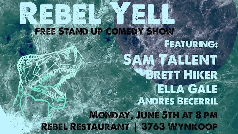 Rebel Yell, a free monthly standup-comedy showcase held at the trendy RiNo eatery and watering hole Rebel Restaurant has been shuffling along for a couple of months now, and it’s returning in June with headliner Sam Tallent. Tallent’s elephantine body may have left Denver for Vegas, but his heart has always been in the Mile High City. While his national profile is growing thanks to appearances on Viceland’s Flophouse and Comedy Central’s Roast Battle, most Denverites are happy to just catch him on local stages again. Hosted and curated by Allison Rose, Rebel Yell features Andres Becerril along with Los Angeles’s Ell Gale and the New York-based Brett Hiker, another prodigal Denverite. The restaurant will offer a wings special during the show. Admission is free; visit Lowry’s Great Lawn Park